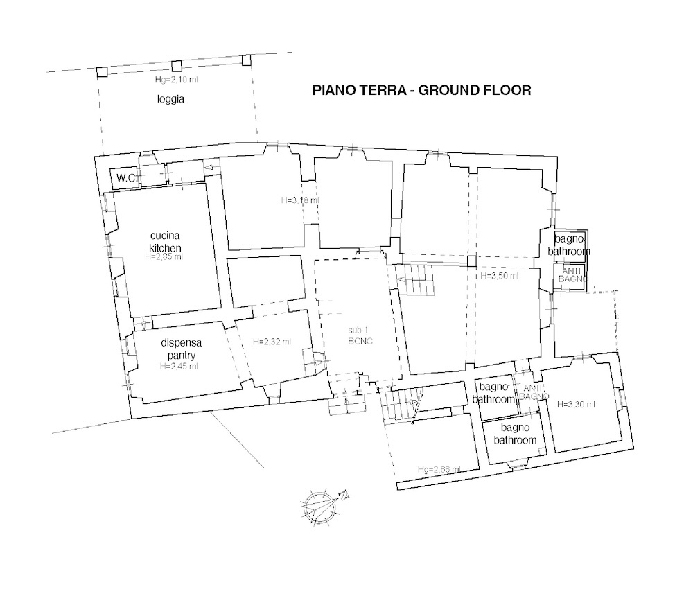 – The second building, “La Canonica,” approximately 453 sqm over three floors, includes cellars and storage rooms in the basement, a living room with fireplace, 3 bedrooms, and 3 bathrooms on the first floor. The attic floor contains an additional bedroom and bathroom.