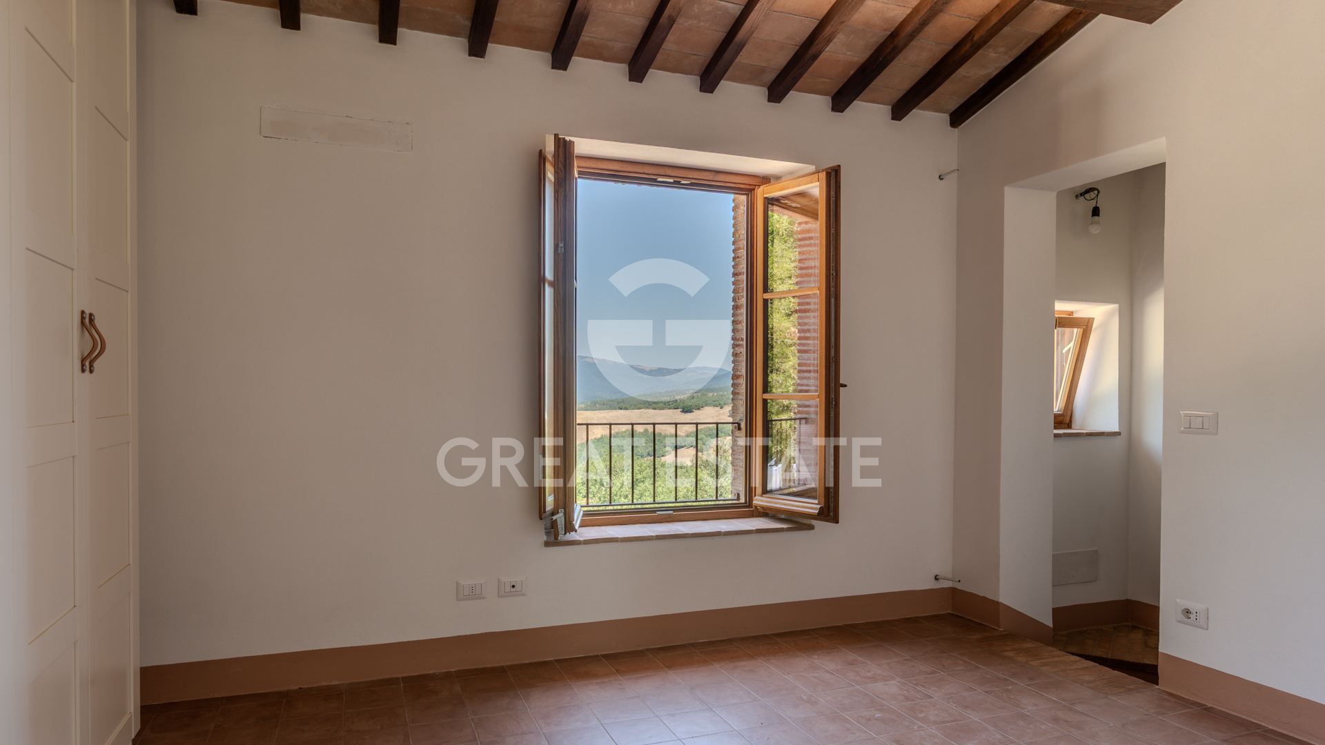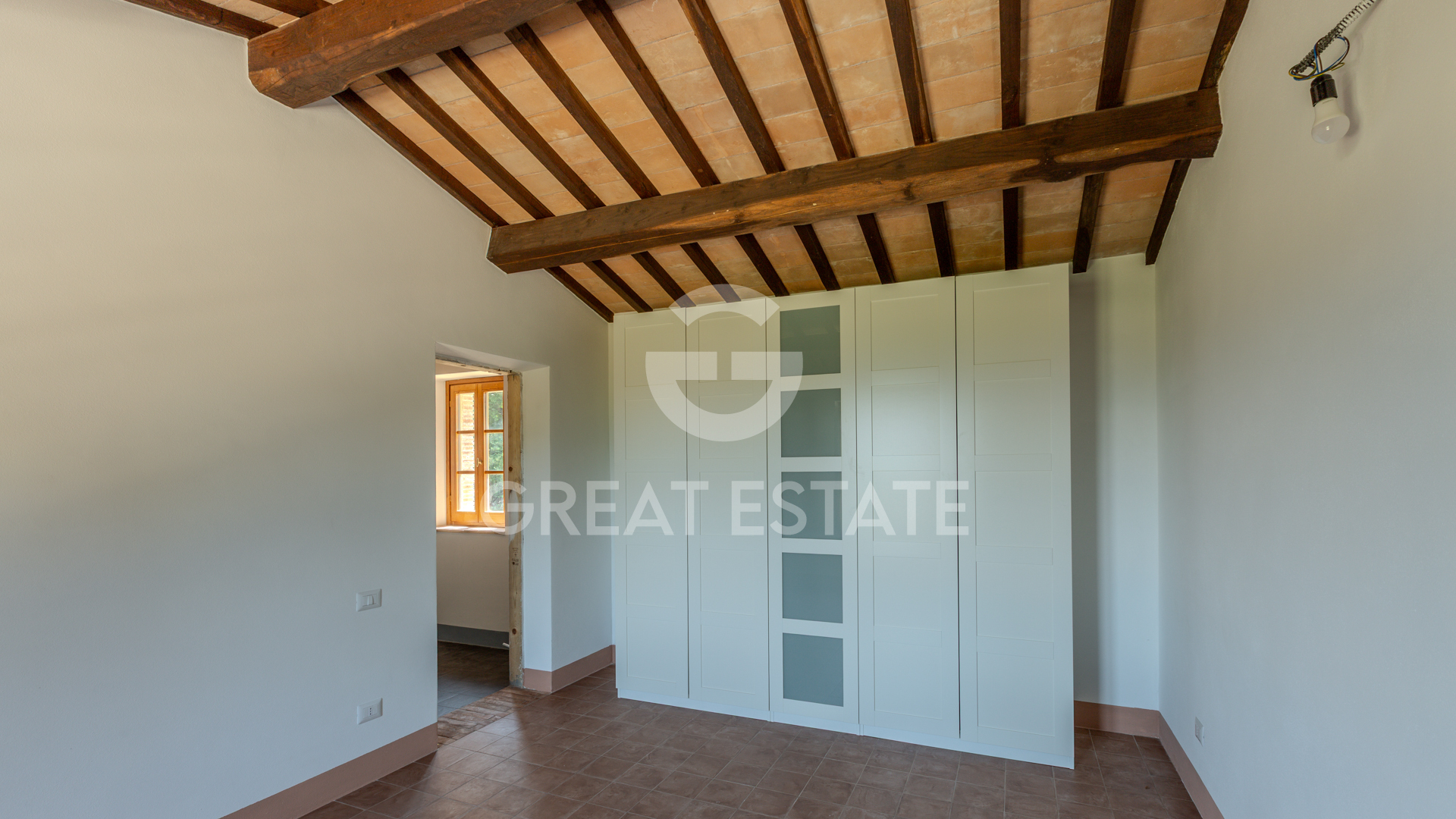 Nestled in the lush Tuscan countryside, this charming stone farmhouse of approximately 160 sqm seamlessly blends traditional warmth with modern comfort. The ground floor features a kitchen with dining area, a cozy living room with fireplace, a study and a bedroom. Upstairs, two bright bedrooms and two bathrooms offer ample space. Surrounded by a garden overlooking the breathtaking panoramic landscape, this estate is an ideal sanctuary for those seeking tranquility and authenticity.