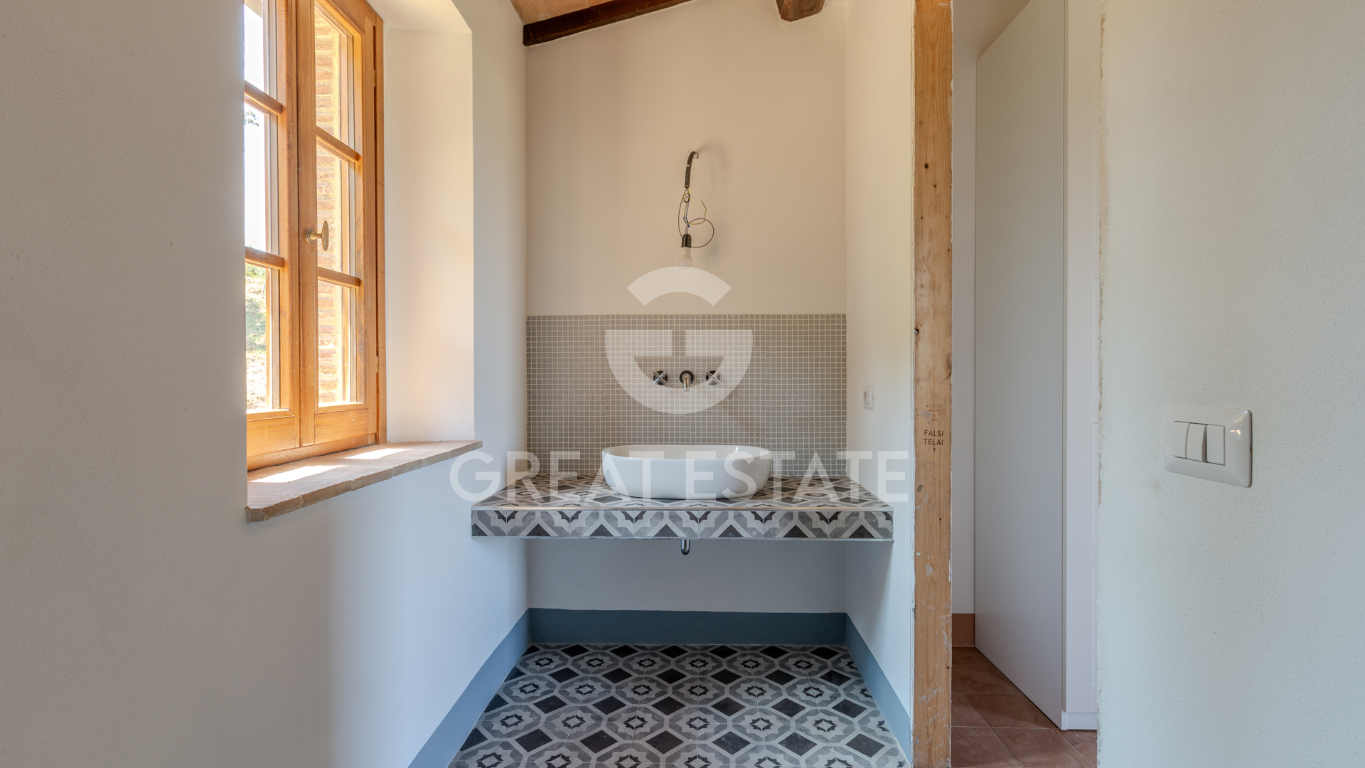 The property underwent a meticulous restoration completed in 2025, with exquisite attention to detail and the use of premium materials. The windows are crafted from fine certified chestnut wood, featuring double glazing to ensure exceptional thermal and acoustic insulation. The ceilings boast elegant reclaimed wooden beams, imparting warmth and authenticity to the spaces. The floors are laid with high-quality porcelain stoneware complemented by refined handmade terracotta insets, while the internal stairs are clad in terracotta. The entire residence is fully insulated, providing year-round comfort and energy efficiency.