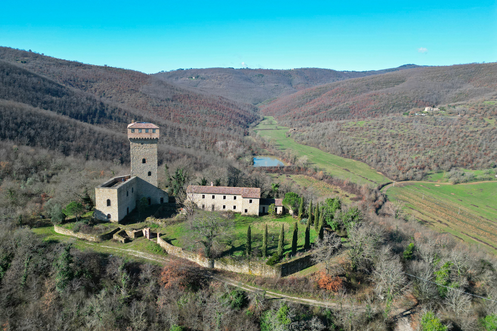 “Castello di Fiume” is a marvellous property surrounded by 6.500sqm of land, which is adjacent to the prestigious Tenuta Reschio, the well-known Convento Cappuccini restored by George Lucas, and to the resort Antognolla Golf.