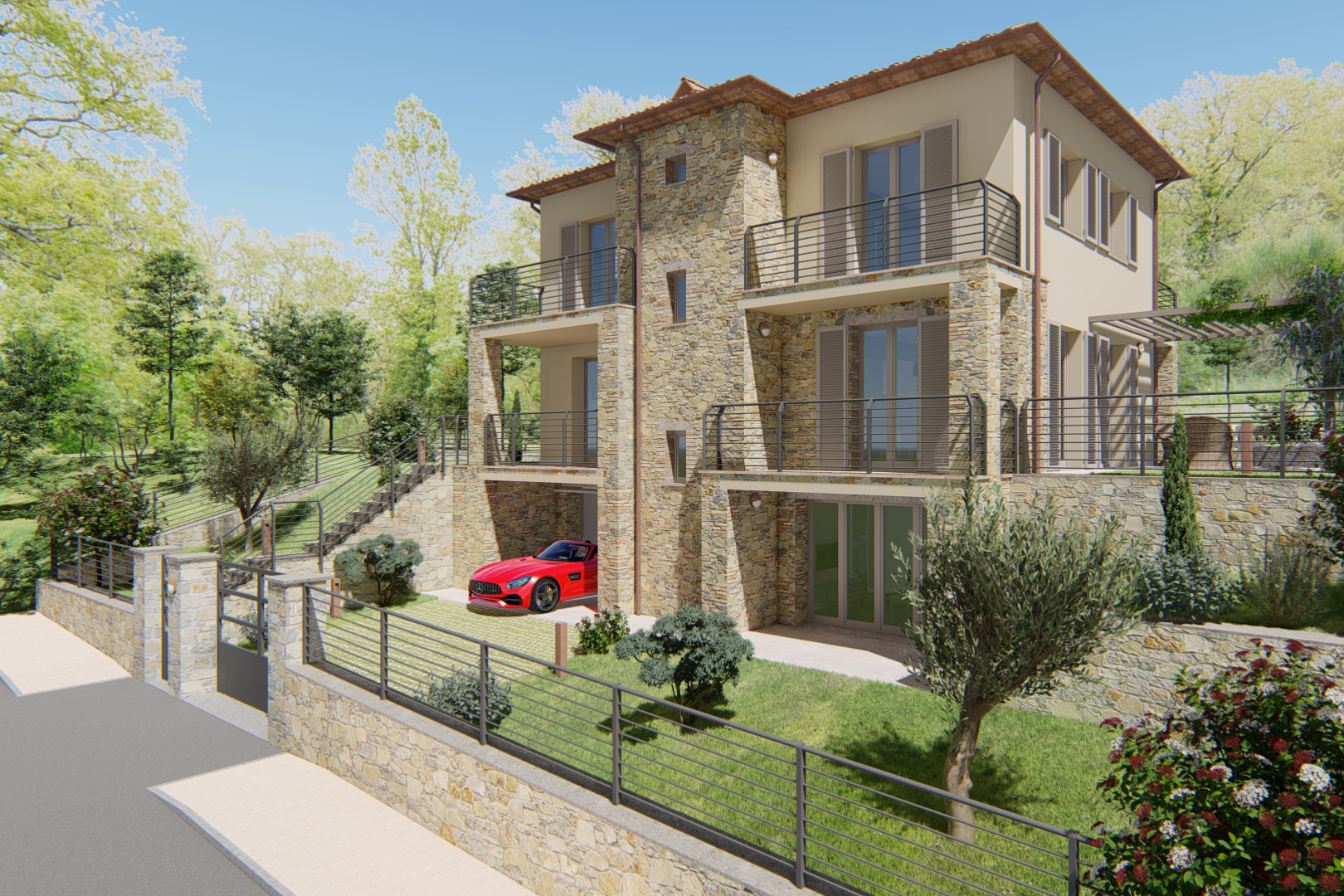 The cottage will have a reinforced concrete or masonry structure partly covered by local stone and partly plastered. The inner ceilings will be in plastered bricks and concrete and, if desired, could have additional wooden beams and cotto bricks. The floorings will be in ancient handmade cotto, bricks or parquet. Fixture will be in wooden shutters. The pitched roofs coated with tiles and Tuscan coppi and wooden pergolas. Thanks to the sage use of the materials and their carful choice there will be perfectly inserted of the estates in the surrounding environment.