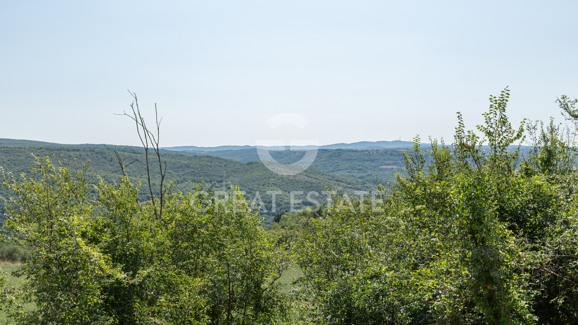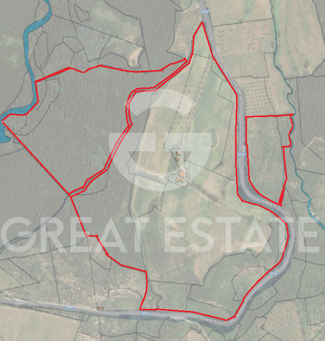 The expansive courtyard offers potential for a garden with the possibility to build a swimming pool. The surrounding land is partly semi-flat, totaling 36 hectares, divided approximately into: 12 ha of arable land, 2.5 ha of tree-cultivated arable land, 3 ha of pasture, 1.5 ha of olive grove with about 150 trees, and around 15 ha of mixed woodland. Additionally, there is an old disused stone quarry, useful for sourcing stone for renovating outbuildings and constructing boundary walls.