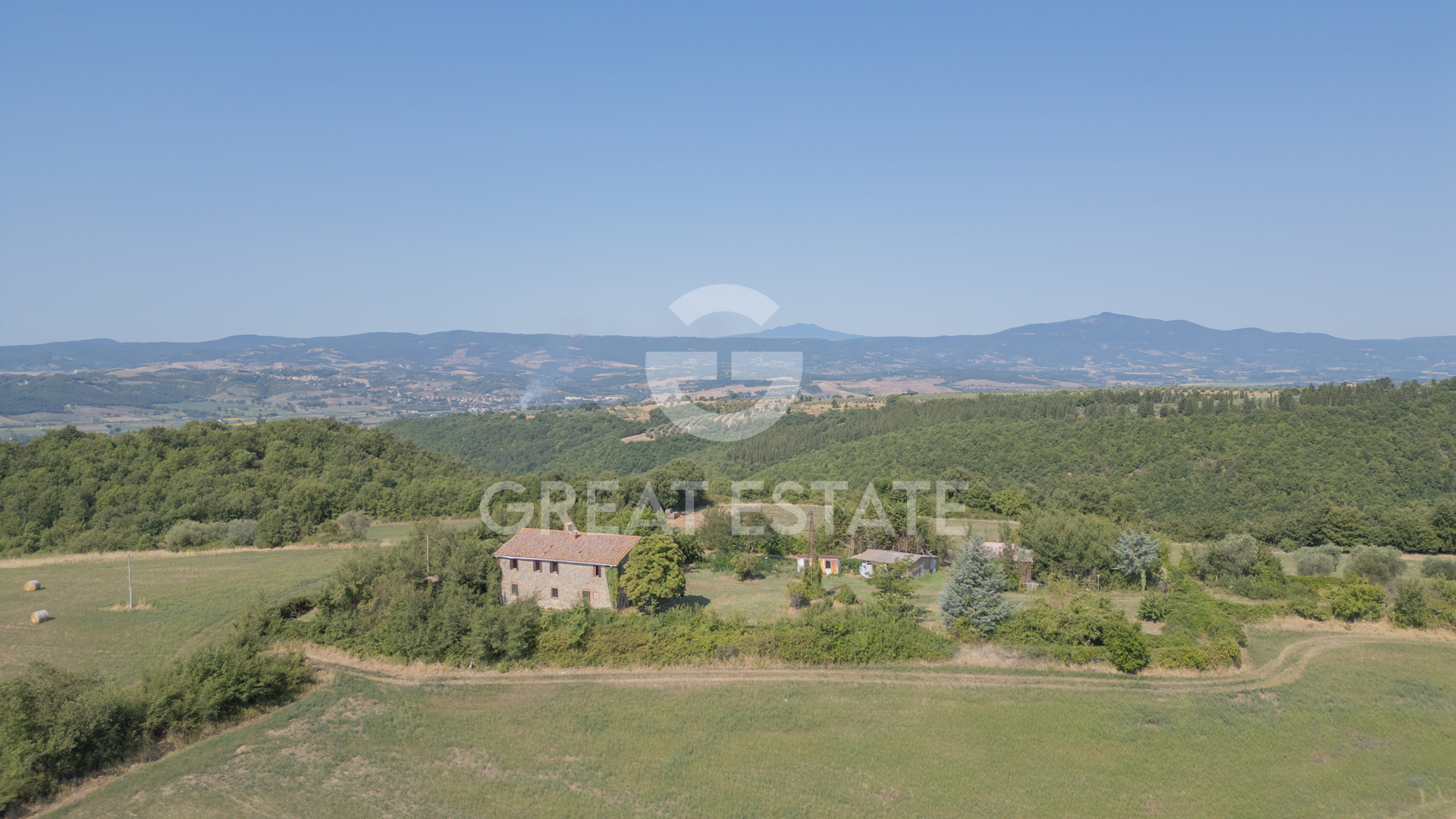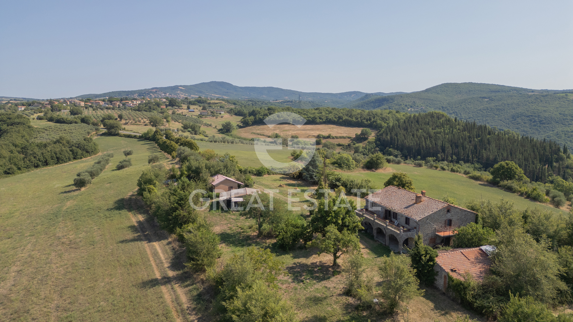 The estate sits atop a dominating hill, not far from famous “Scarzuola” with its tourist complex. Within a radius of approximately 50 km are historic centers of central Italy such as Città della Pieve, Pienza, Montepulciano, Montalcino, Lake Trasimeno, the beautiful Val D’Orcia, Orvieto and Assisi. Rome and Florence airports are just over 120 minutes away, while Perugia is a 50 minutes drive