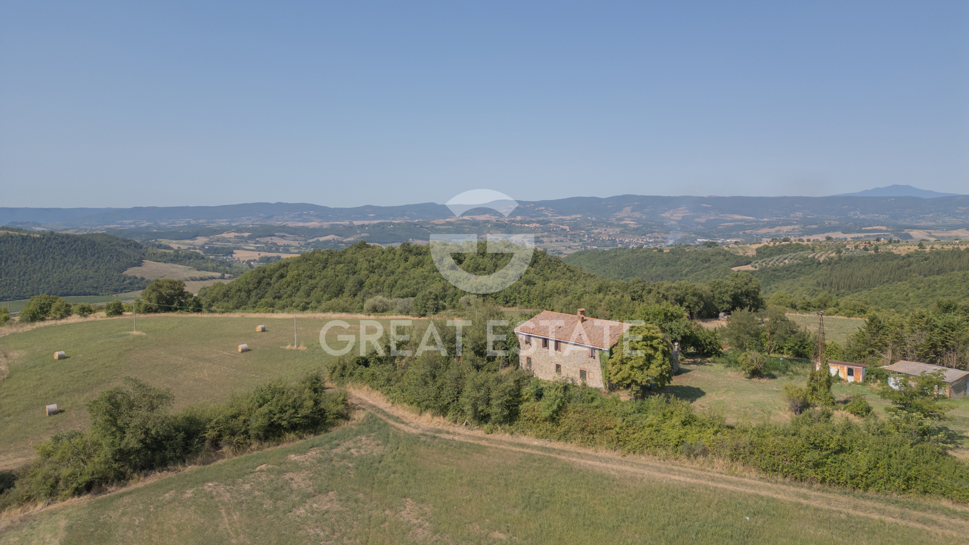 The property’s panorama is beautiful from sunrise to sunset, offering spectacular views over the rolling landscapes of Umbria and Tuscany. With great potential, once restored, it can be used both as a private residence and as an agricultural estate and/or future hospitality property.