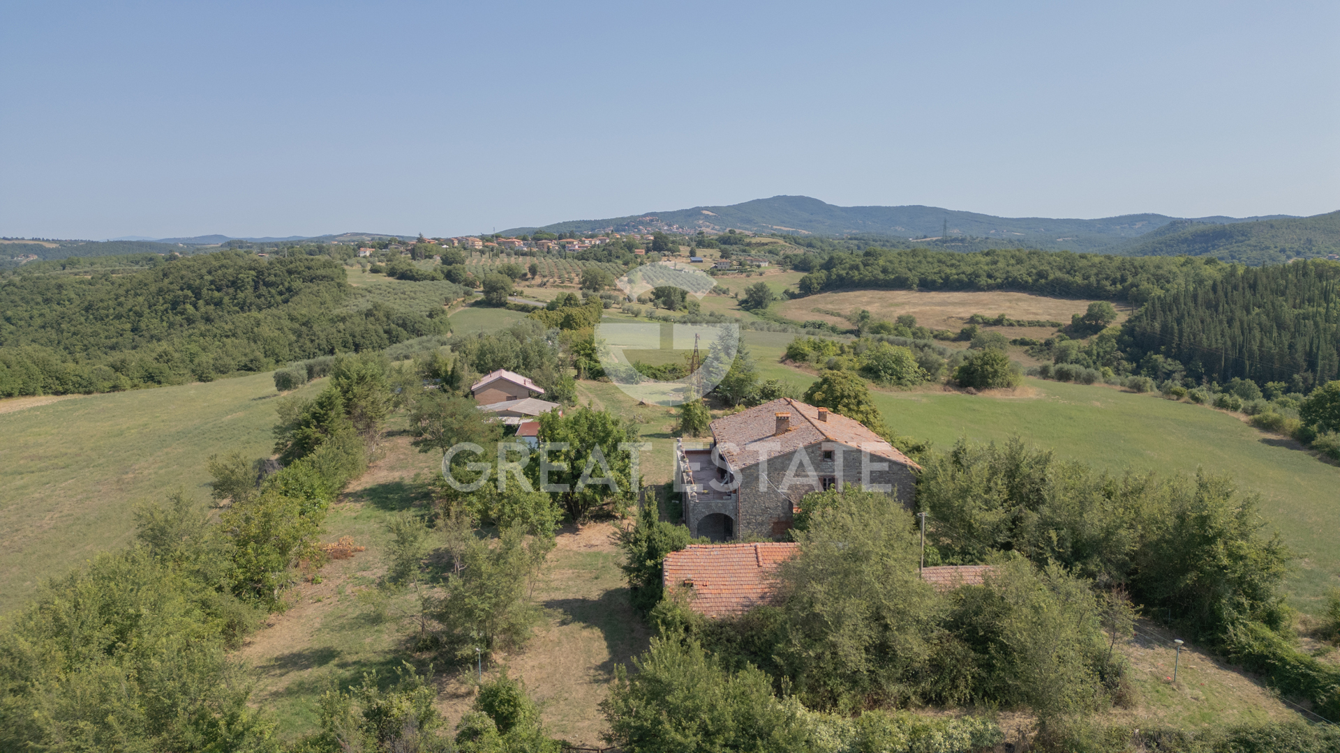 The property is for sale in Umbria, bordering Tuscany, located 1 km from the small village of Faiolo, which offers a bar and a high-quality butcher shop, both accessible on foot . The nearest municipality is Montegabbione, approximately 4 km from essential servicesand about 6 km from the Fabro exit, featuring a train station and the A1 motorway connecting Rome and Florence along with their airports.