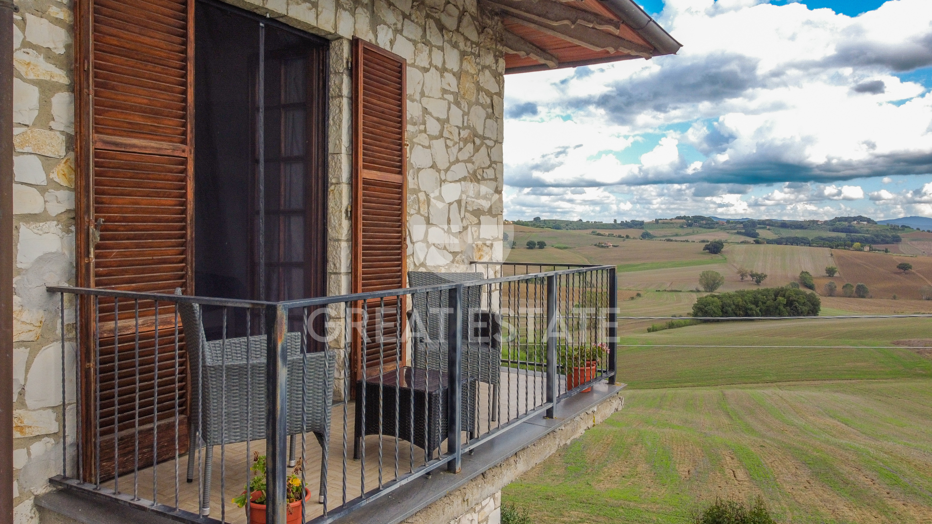 Beautiful stone villa with swimming pool, conveniently located on the road connecting Lake Trasimeno to Lake Chiusi. The villa is spread over 2 floors with 2 apartments, all or part of which can be rented. The property boasts olive groves. Numerous terraces and balconies with views, and a large garden with a pool, allow you to immerse yourself in the authentic Umbrian countryside.