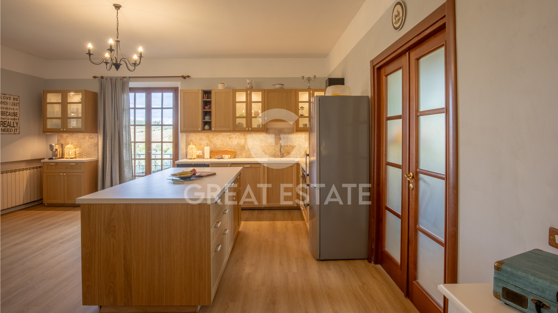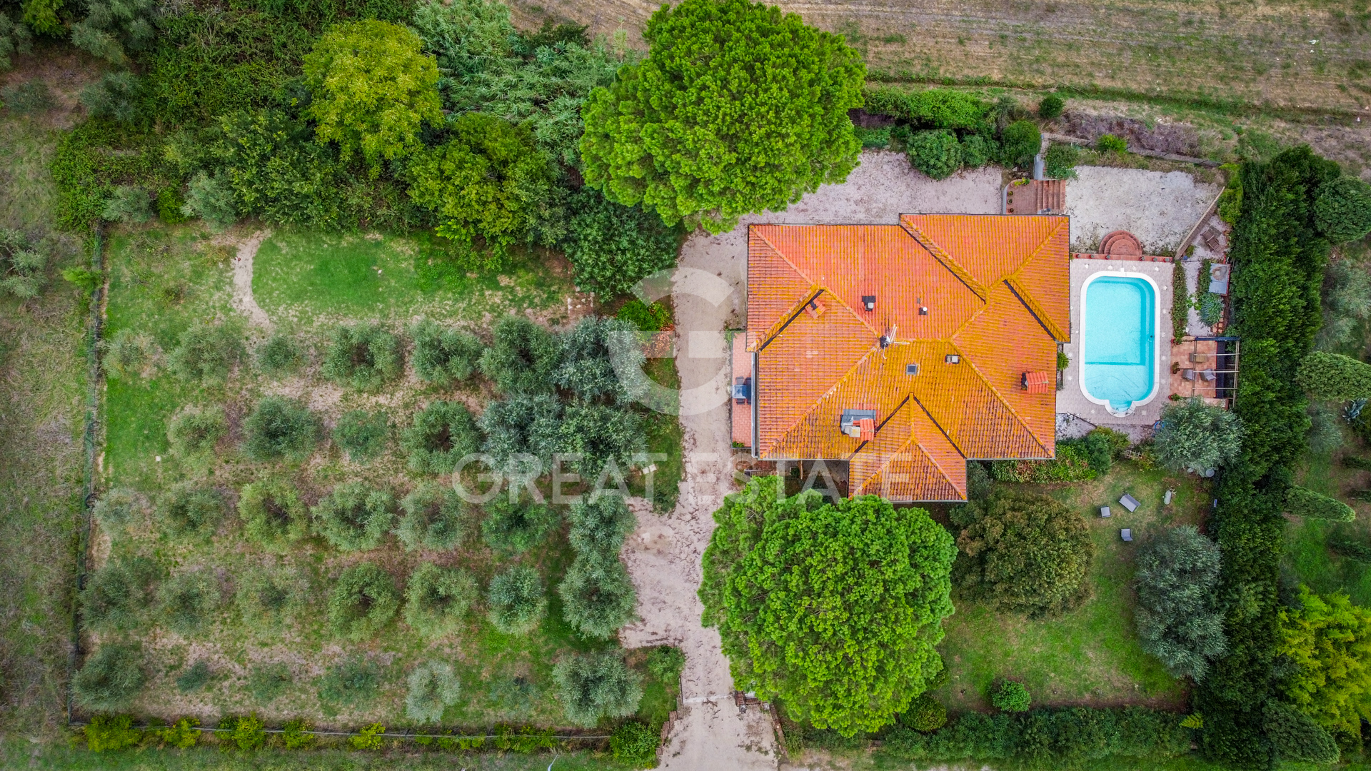 Surrounded by a splendid garden and 2,500 square meters of land, including an olive grove with 50 olive trees, as well as pines, large fig trees, and ornamental plants, which encircle the building. The property also features a charming swimming pool next to a wooden pergola, offering breathtaking views of the countryside. The villa enjoys a convenient position along the road with easy access and open countryside, with stunning views of the hills and the lake. This is a compelling investment opportunity, offering the possibility to rent out the entire villa or the three-bedroom, three-bathroom ground floor apartment, as part of the property is currently used for this purpose. Alternatively, the two apartments could be easily connected to create one large and comfortable family home with 5 bedrooms.