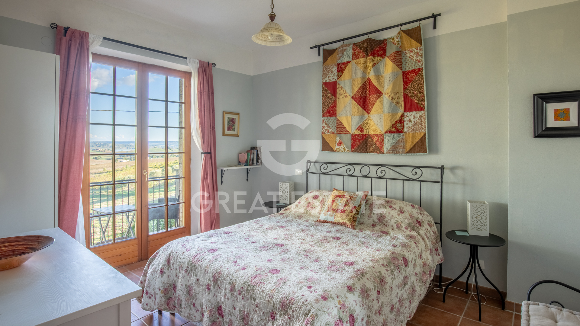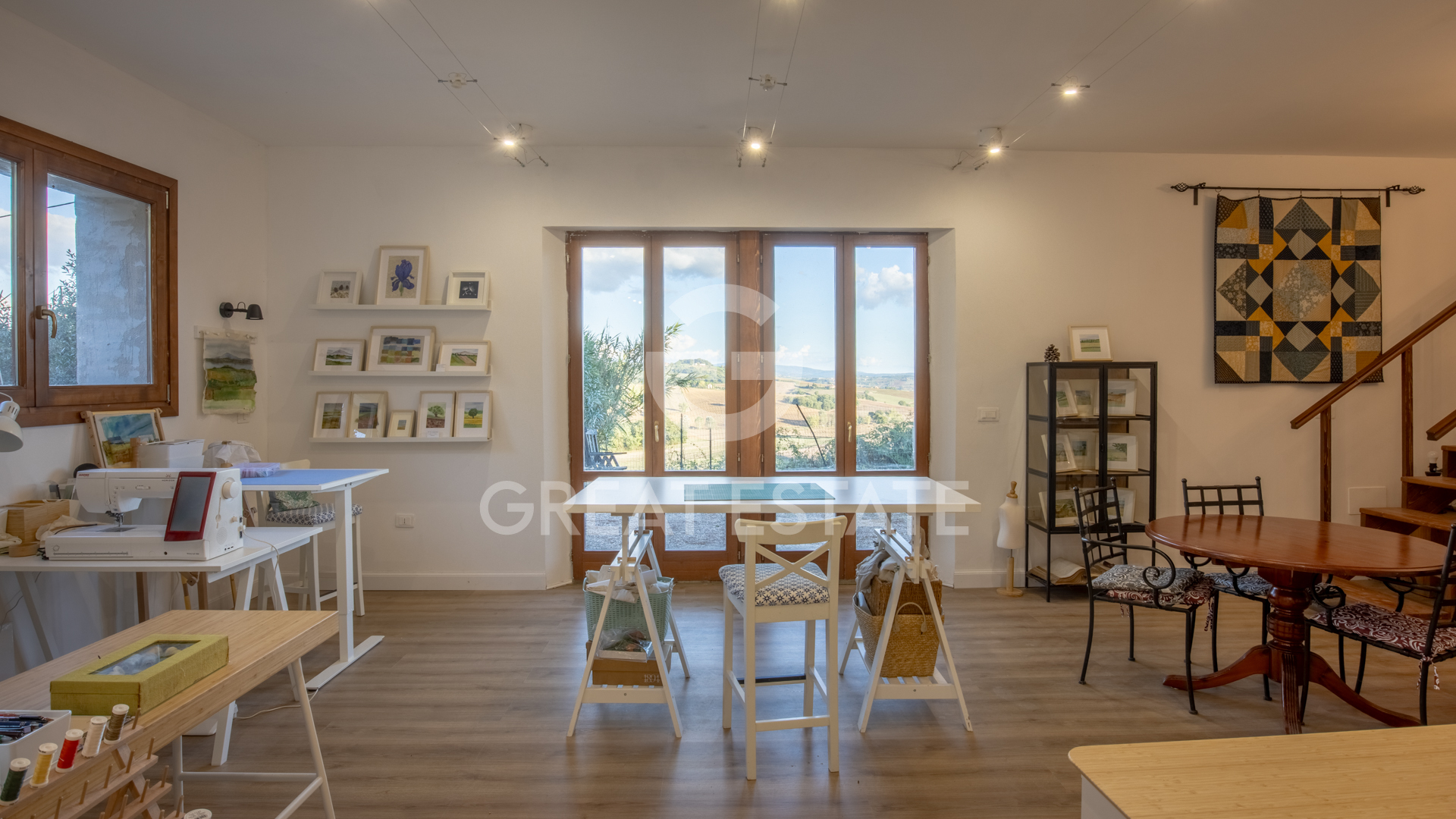 Right on the border between Umbria and Tuscany, a stone villa in a convenient location, situated on the road connecting Lake Trasimeno to Lake Chiusi. It boasts balconies on all sides, allowing you to follow the shade or the sun throughout the day, 5 bedrooms and 6 bathrooms, an L-shaped tavern with stunning views, and a swimming pool. The villa is a unique building spread over three floors and includes:
