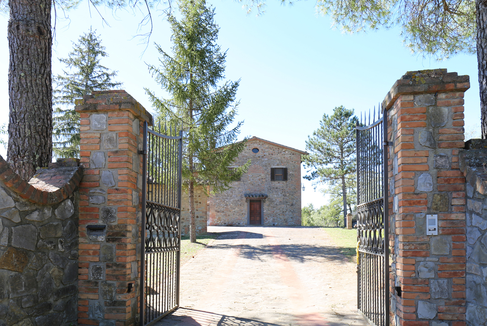 An automatic gate leads into the farmhouse and opens the door to a beautiful paved courtyard with a well.