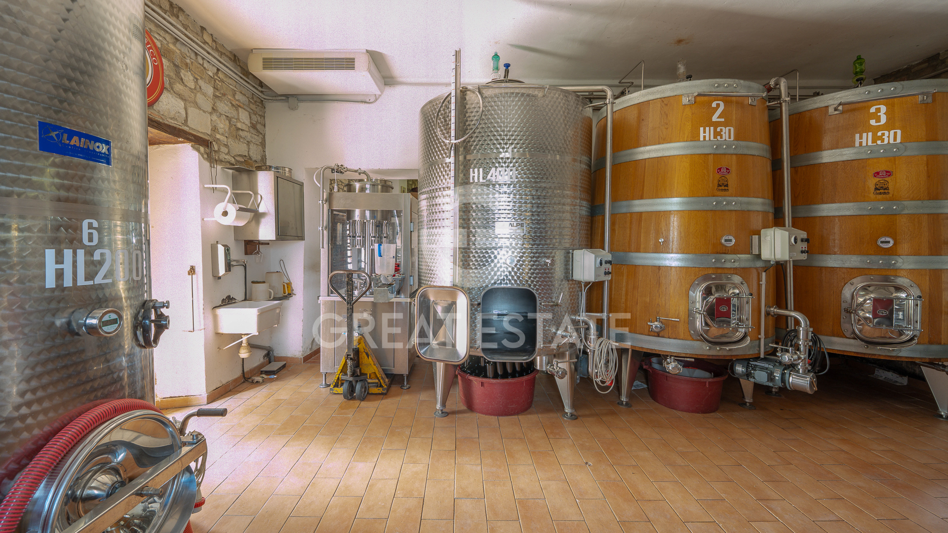 Also on this level is the cellar, which has been completely renovated over the years and is equipped with modern stainless steel tanks, wooden barrels and vats.