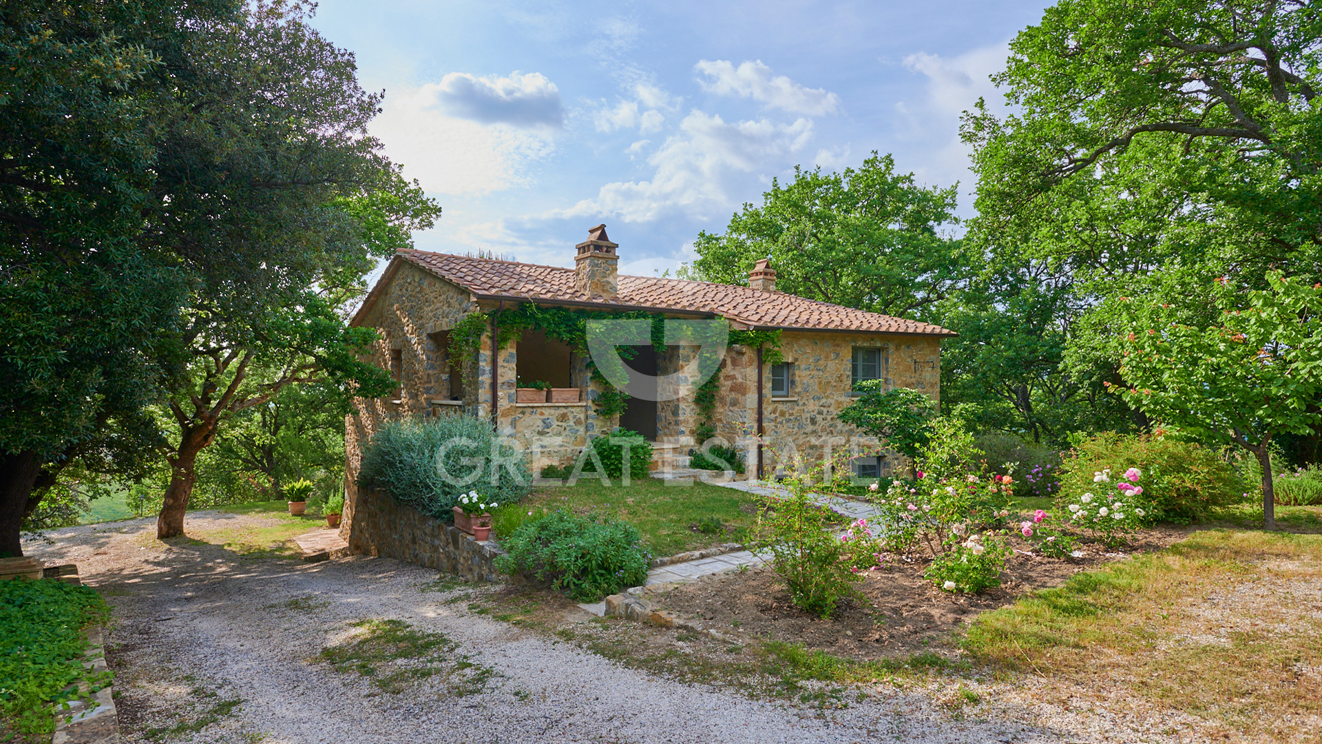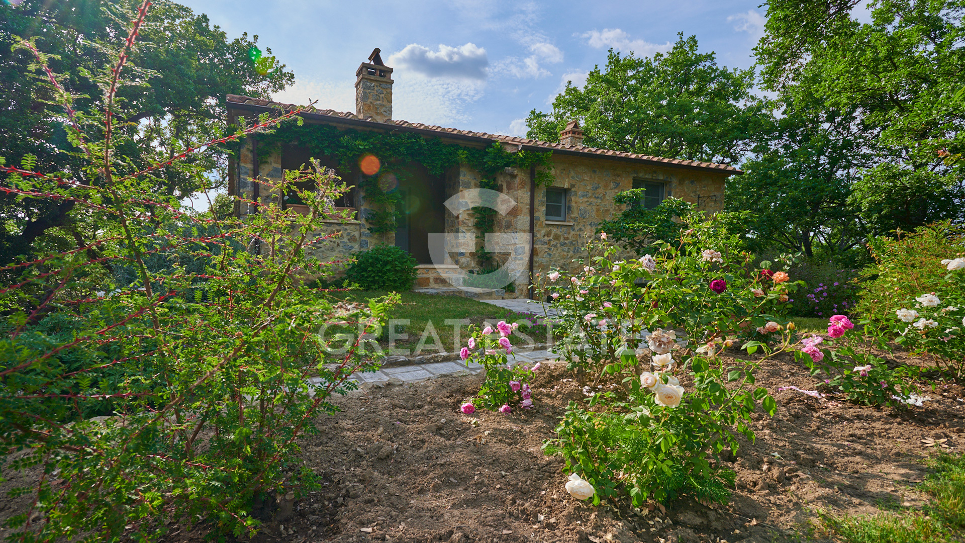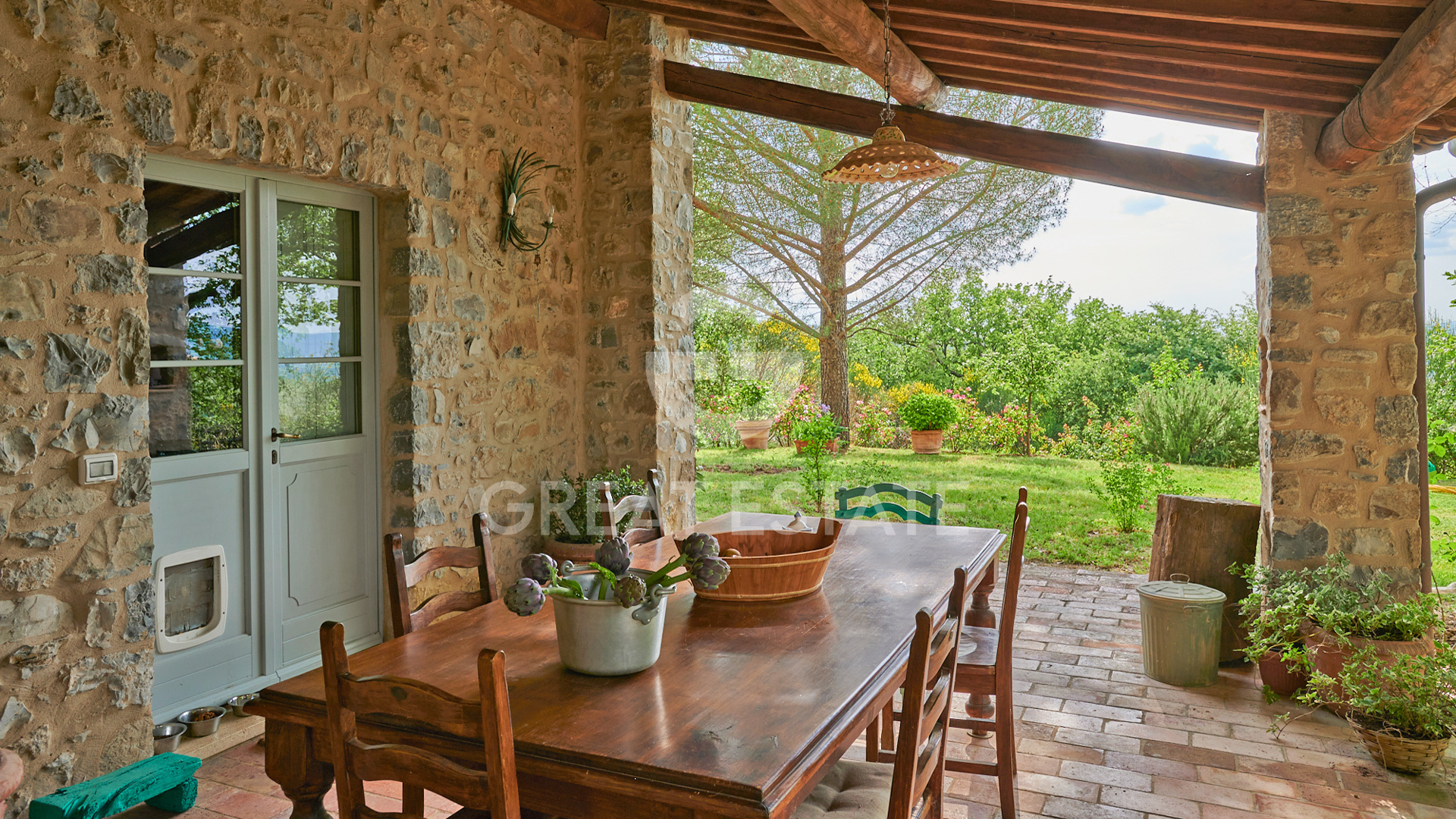 The land extends for approximately 3.5 hectares and includes a private park of about 2,390 sqm, a magnificent olive grove with 100 trees of the prized “Olivastra Seggianese” variety, and woodland.