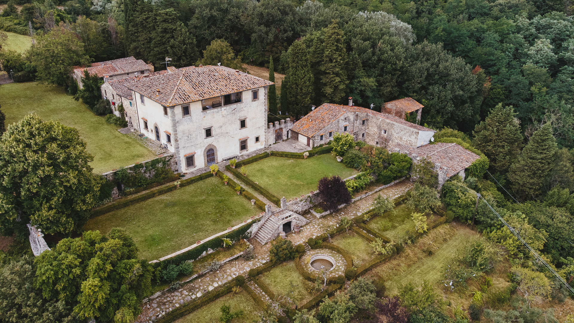 A short distance from Florence, in a panoramic position, we find this superb historic residence dating back to the late 16th century, enriched by a magnificent Italian garden, various outbuildings, and an olive grove.