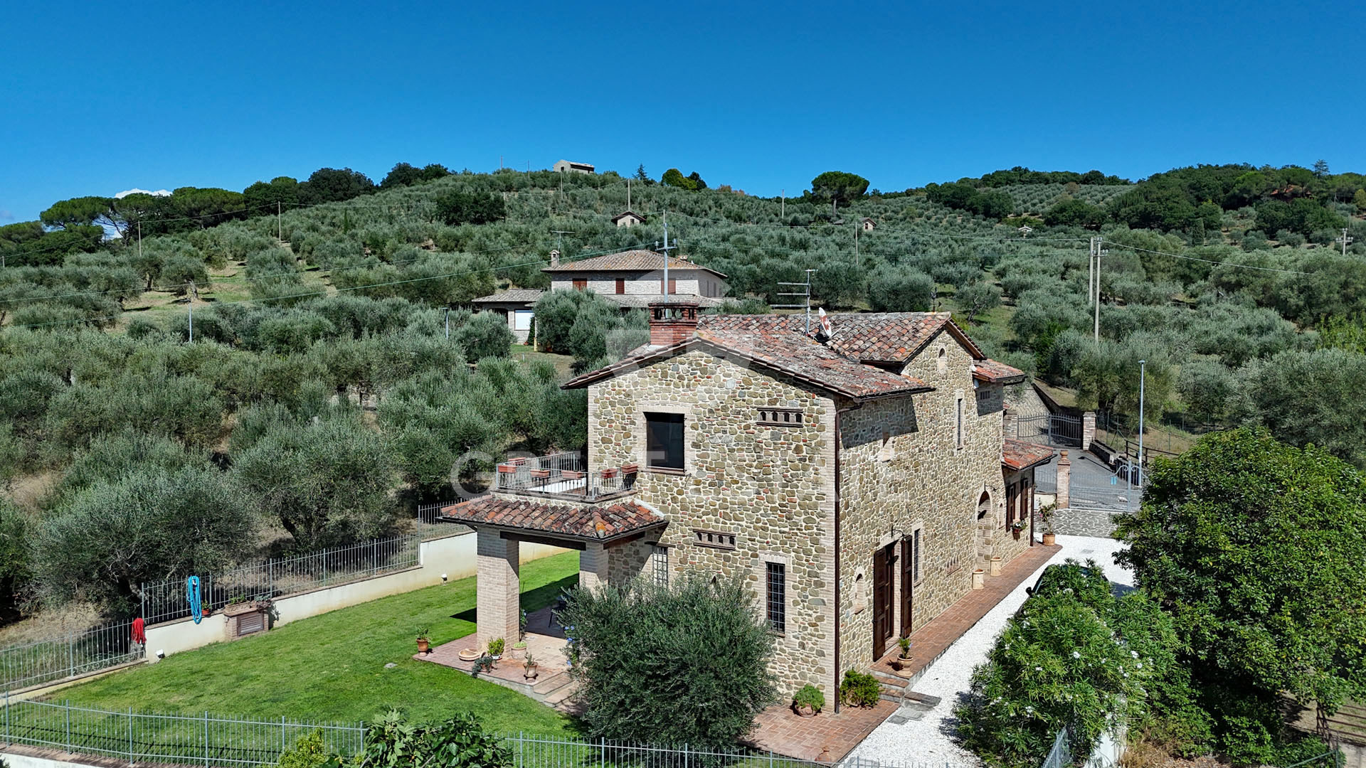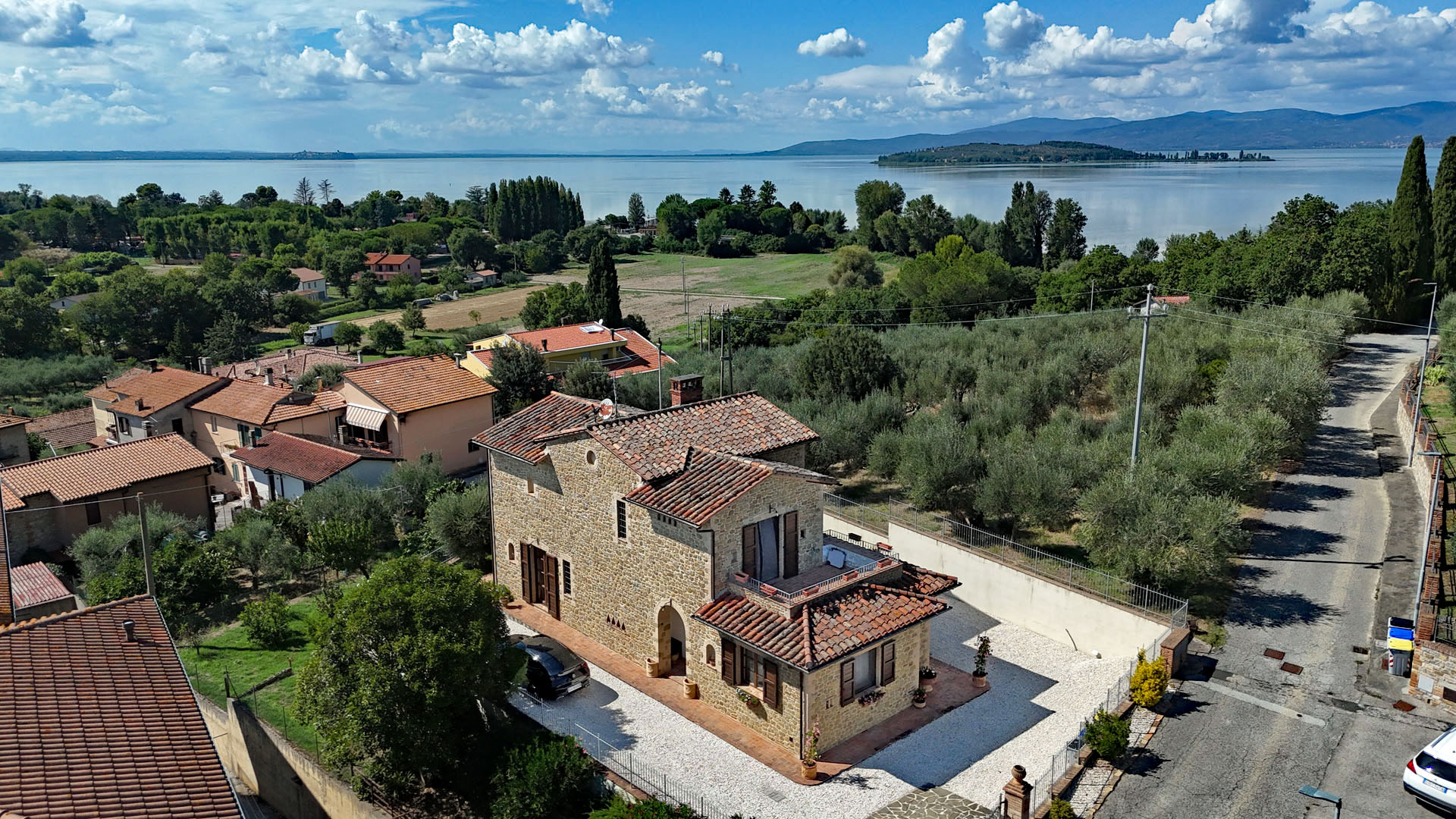 Charming stone villa featuring interiors inspired by the local traditional style, boasting stunning views of Lake Trasimeno, an olive grove, and the potential to build a swimming pool.
