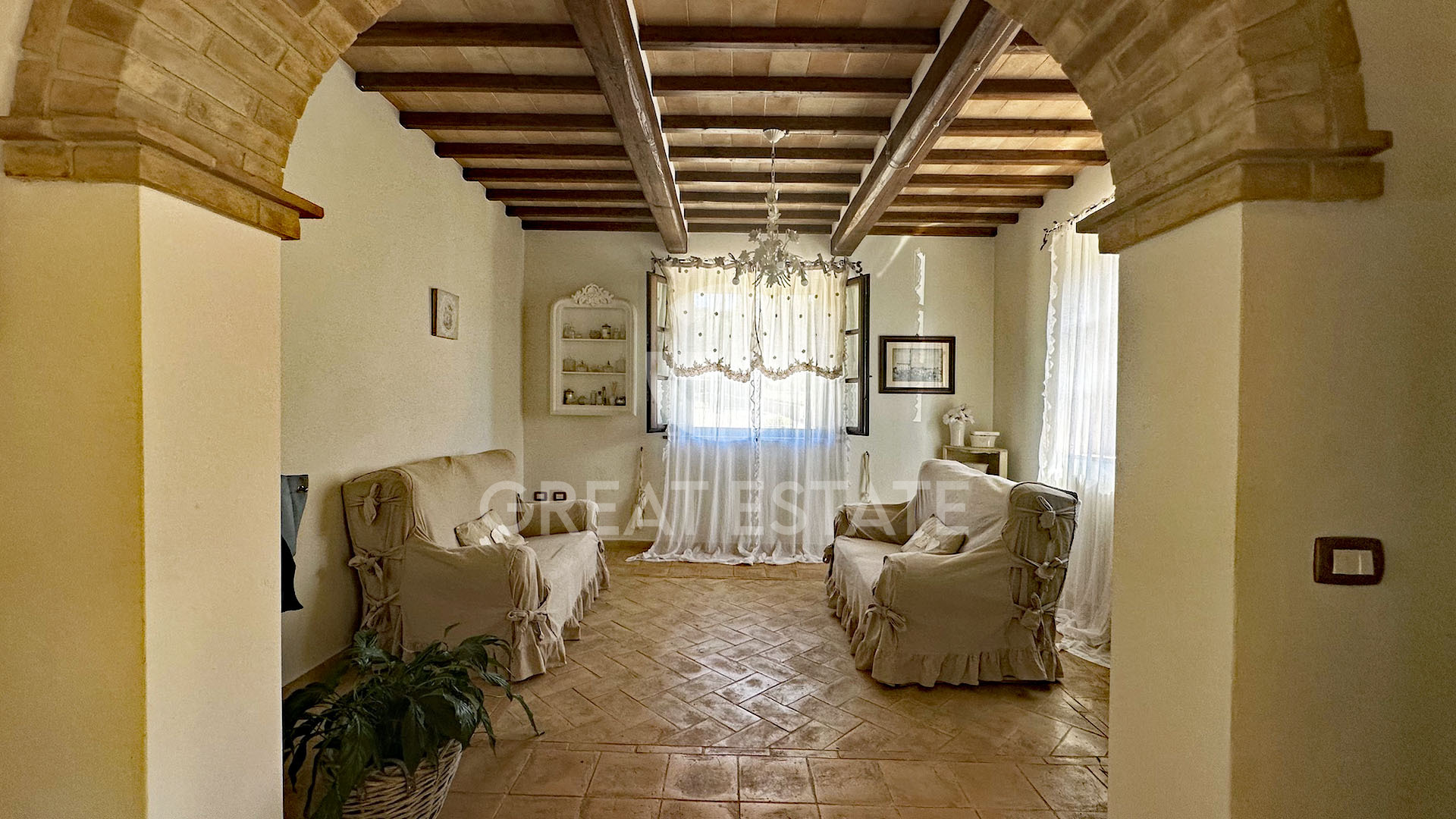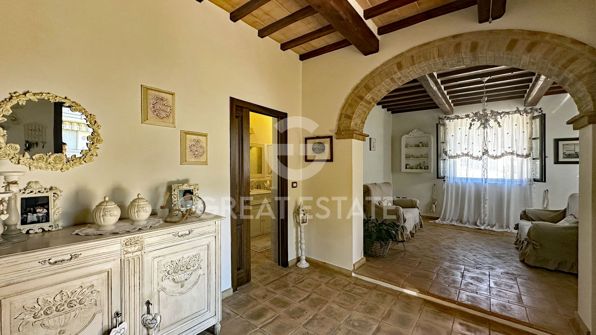 Inside, terracotta floors and exposed beam ceilings, enhanced by brick arches and wooden fixtures, define the interior spaces and recall Umbrian architectural tradition, ensuring high-quality materials combined with practicality and comfort.