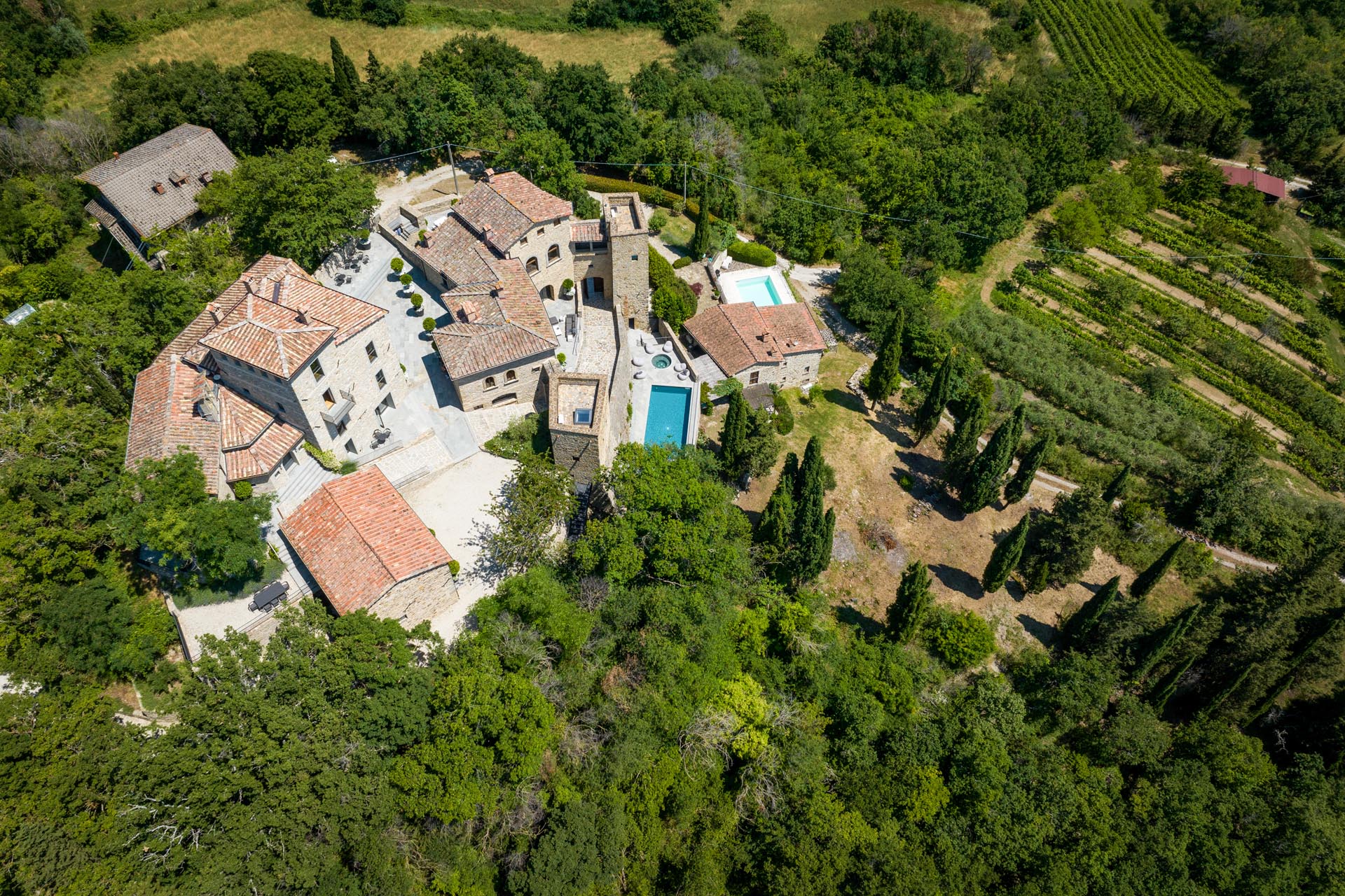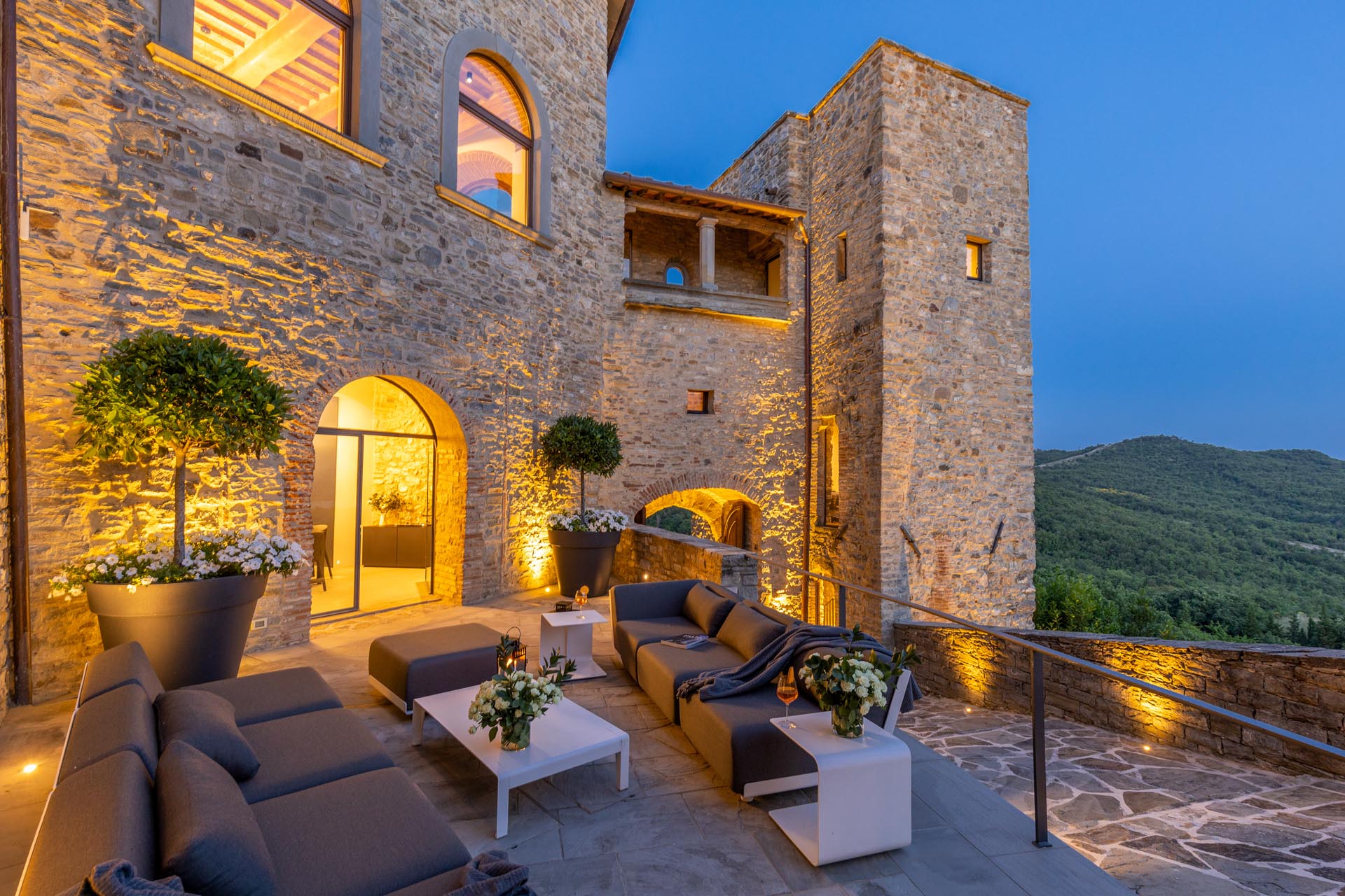 Explore this remarkable castle situated in the Val Tiberina, a captivating historical enclave nestled on the confluence of Tuscany, Umbria, and Marche. Merely an hour’s drive from Arezzo and two hours from Florence, this venerable castle invites guests to immerse themselves in a harmonious blend of ancient eras and contemporary luxury