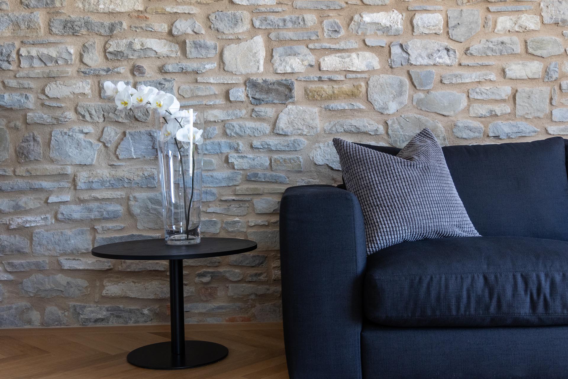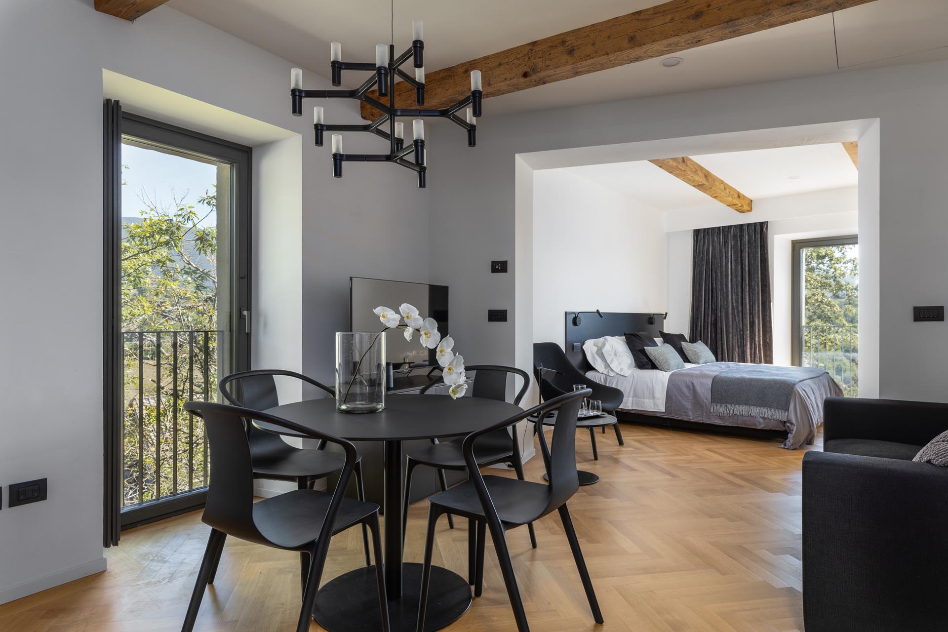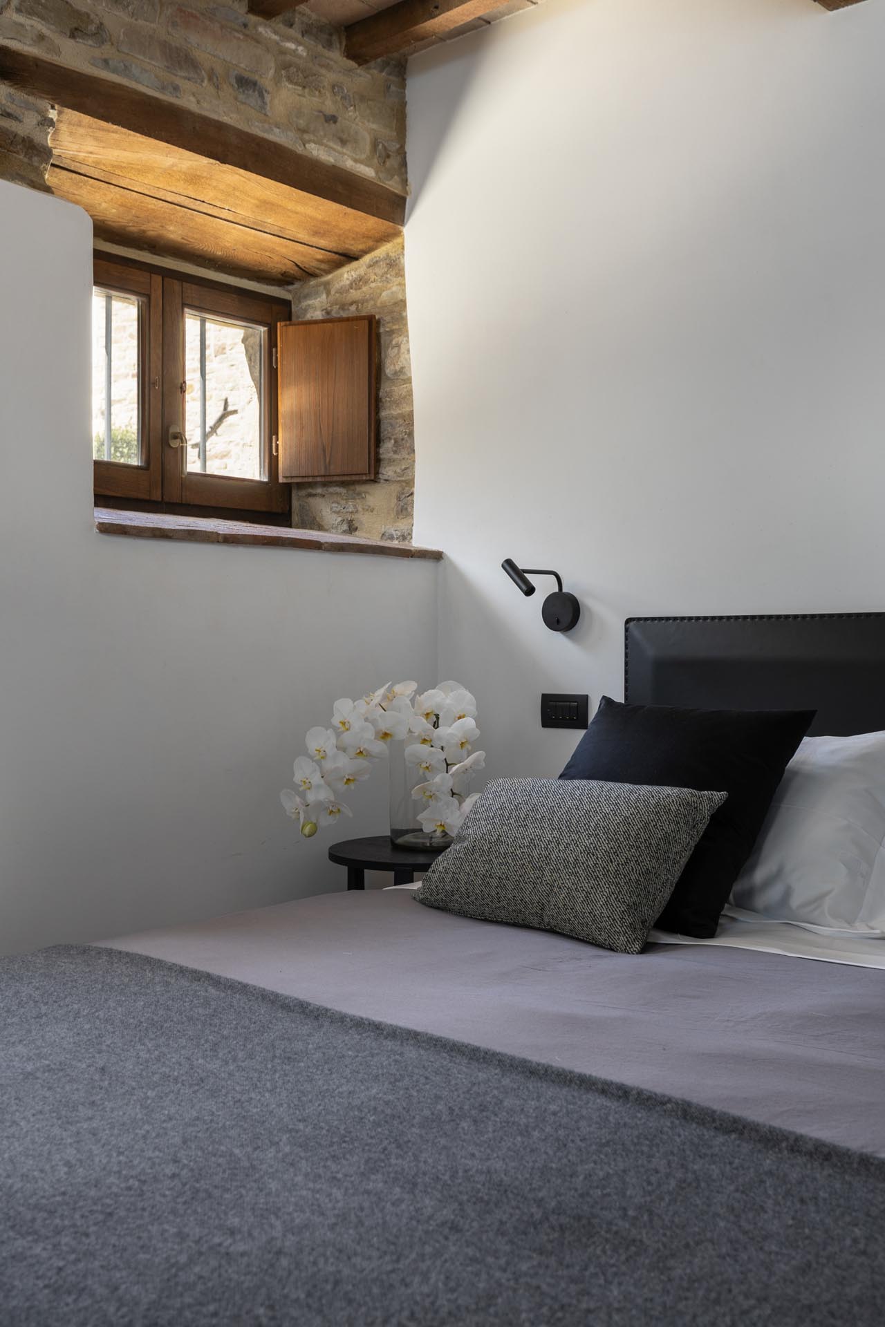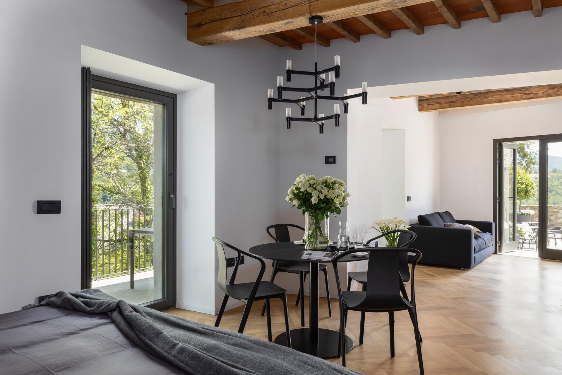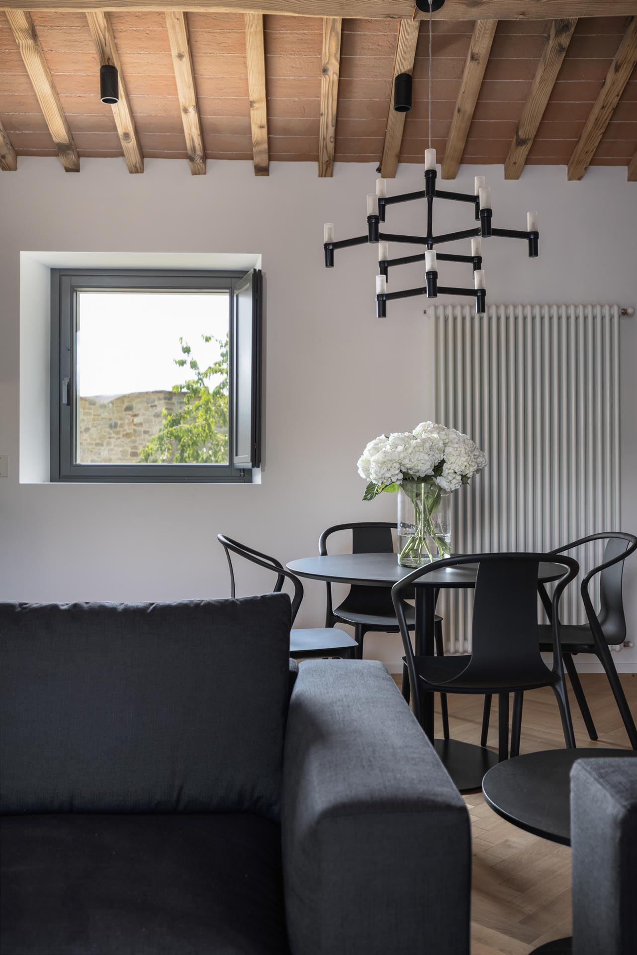 Centuries-old stones and original wooden beams have been thoughtfully integrated with wrought metal frames and fixtures, various marble types, colours, and modern fabrics.