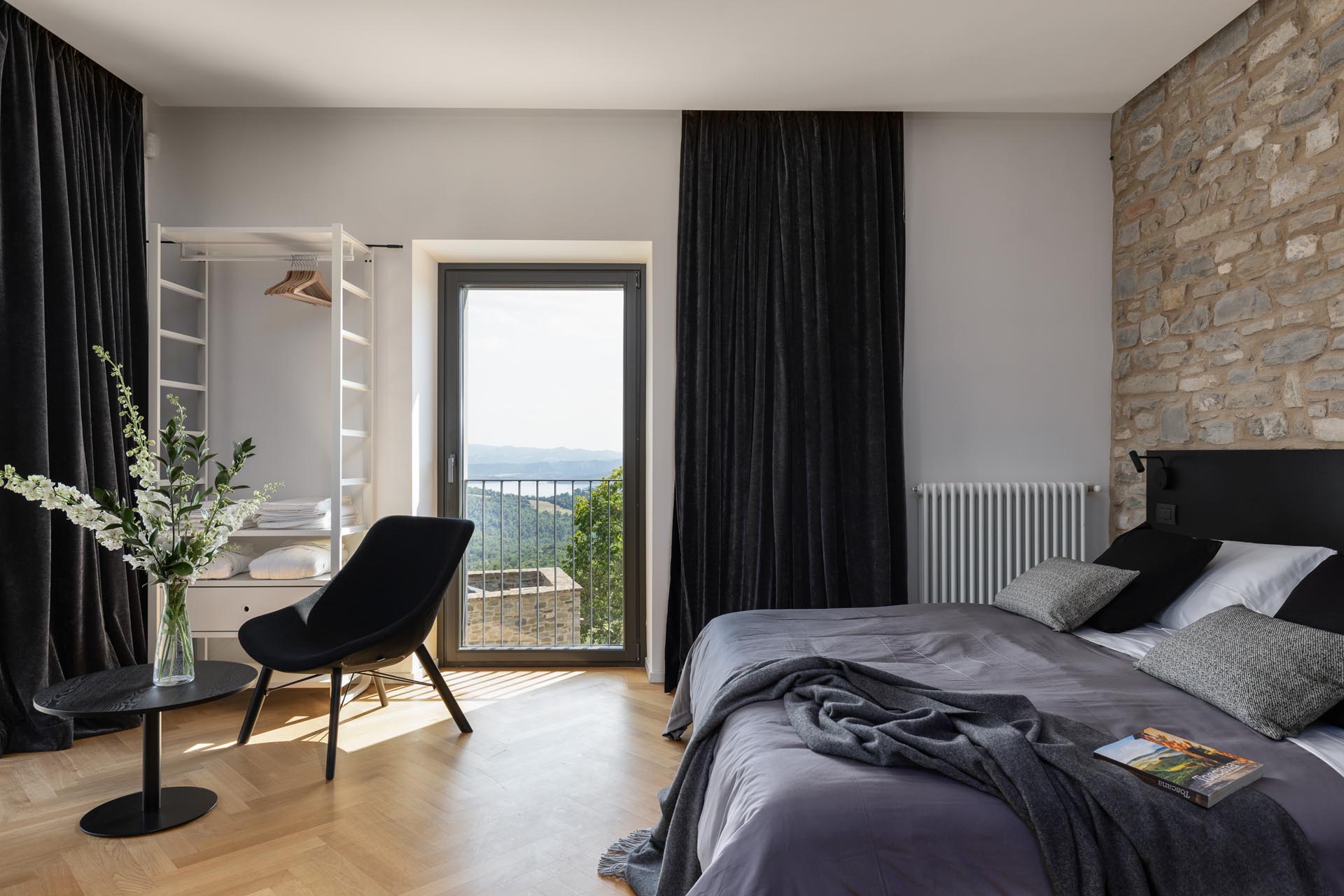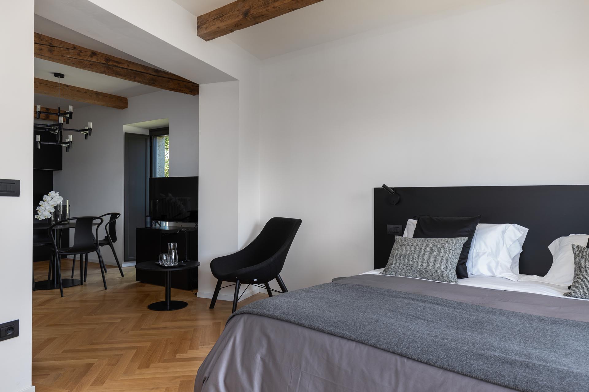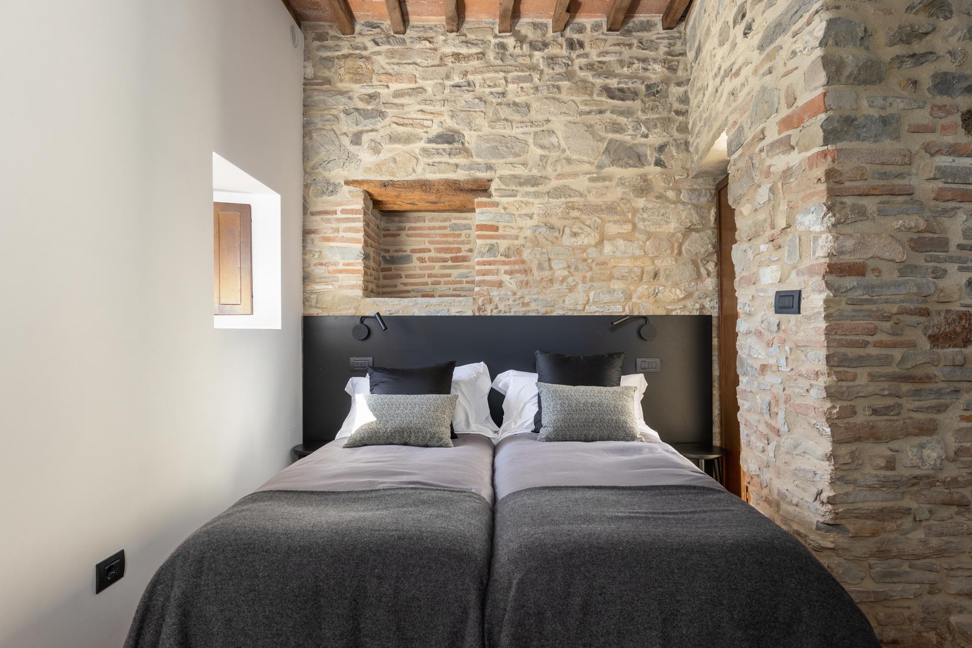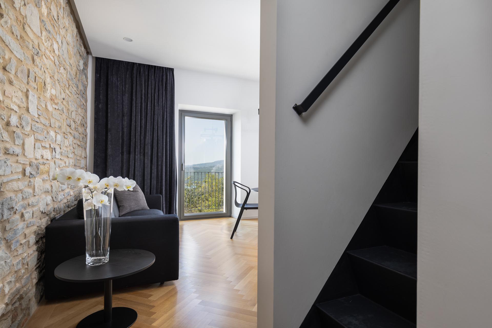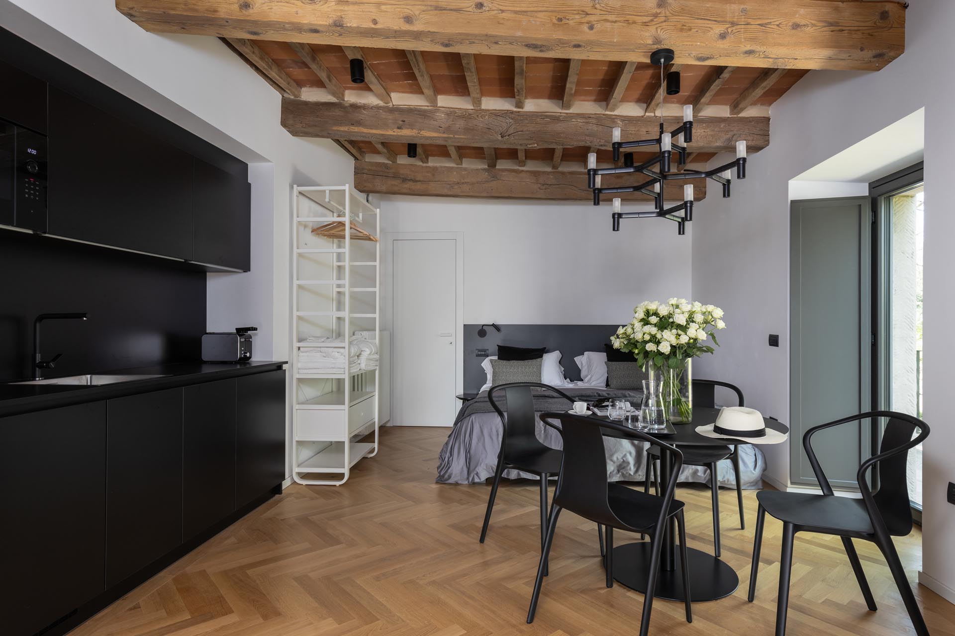 Centuries-old stones and original wooden beams have been thoughtfully integrated with wrought metal frames and fixtures, various marble types, colours, and modern fabrics.