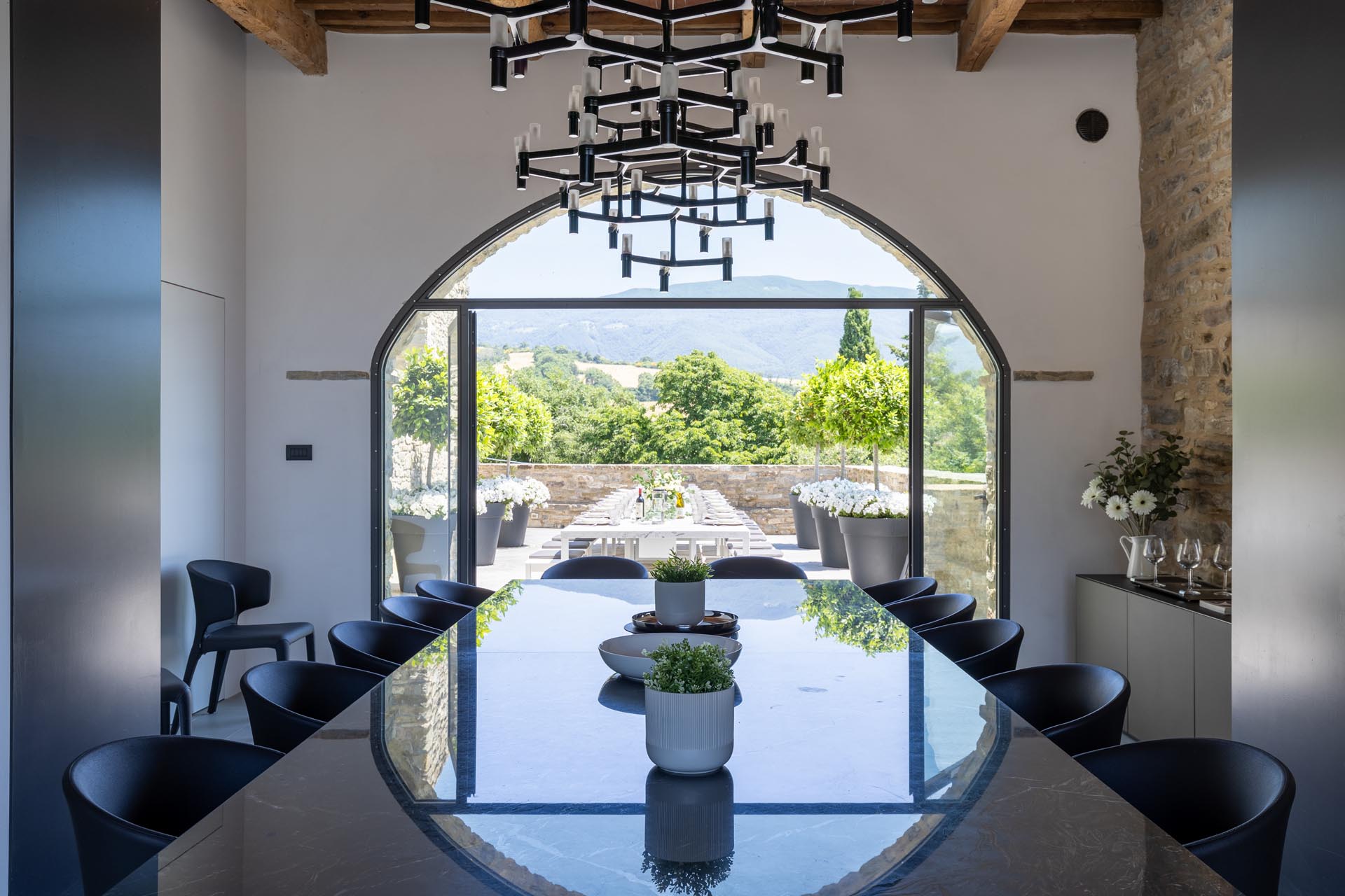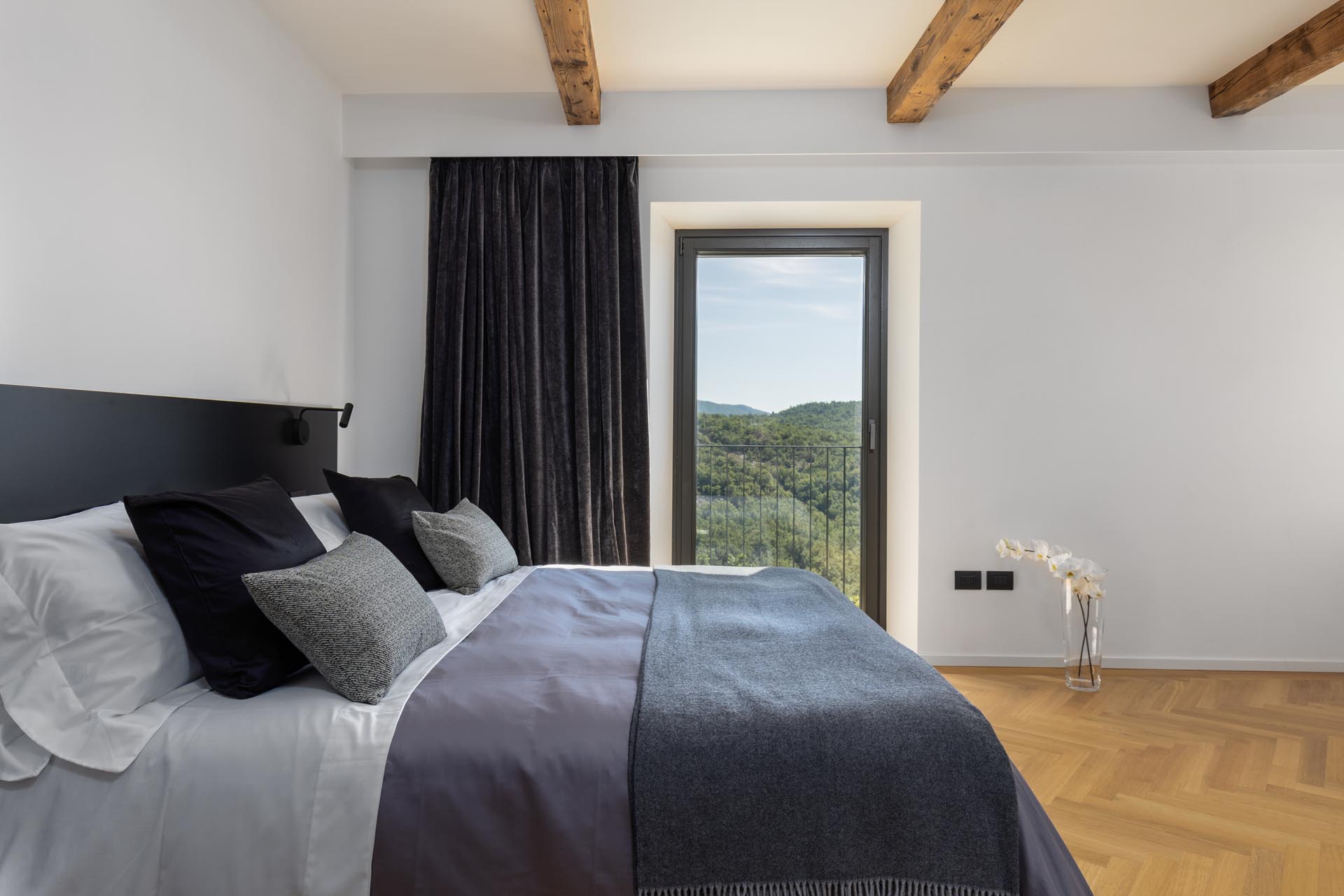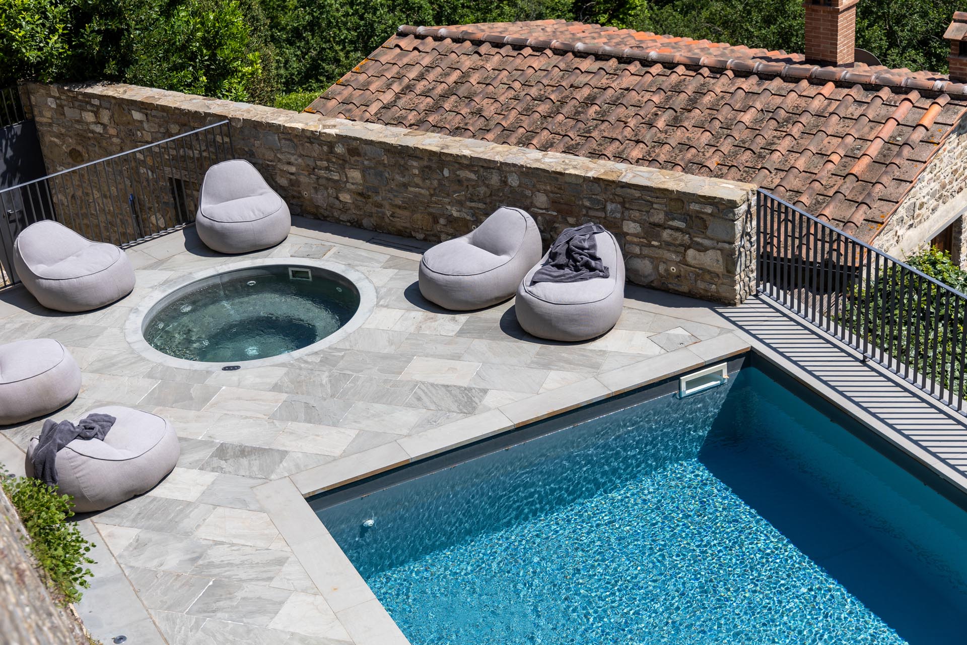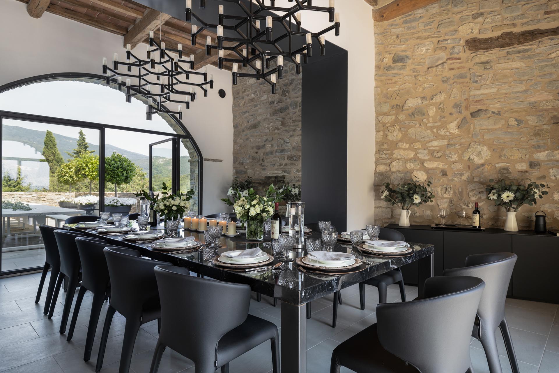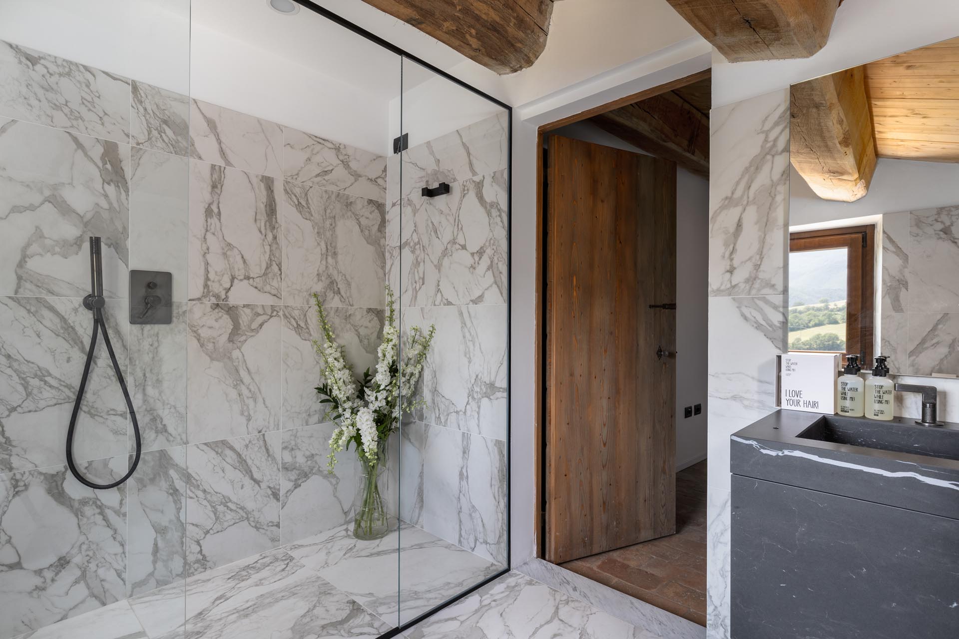 Centuries-old stones and original wooden beams have been thoughtfully integrated with wrought metal frames and fixtures, various marble types, colours, and modern fabrics.