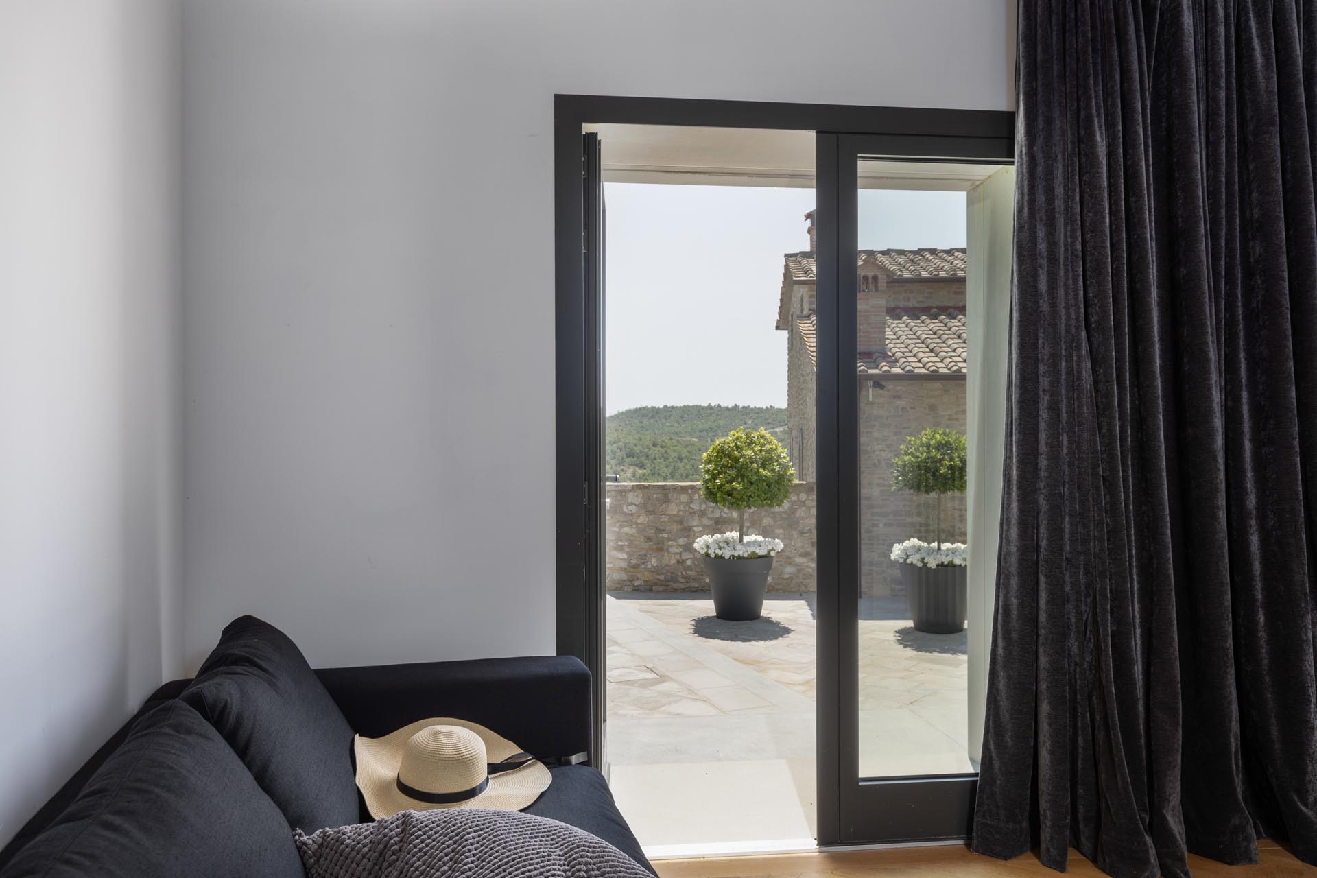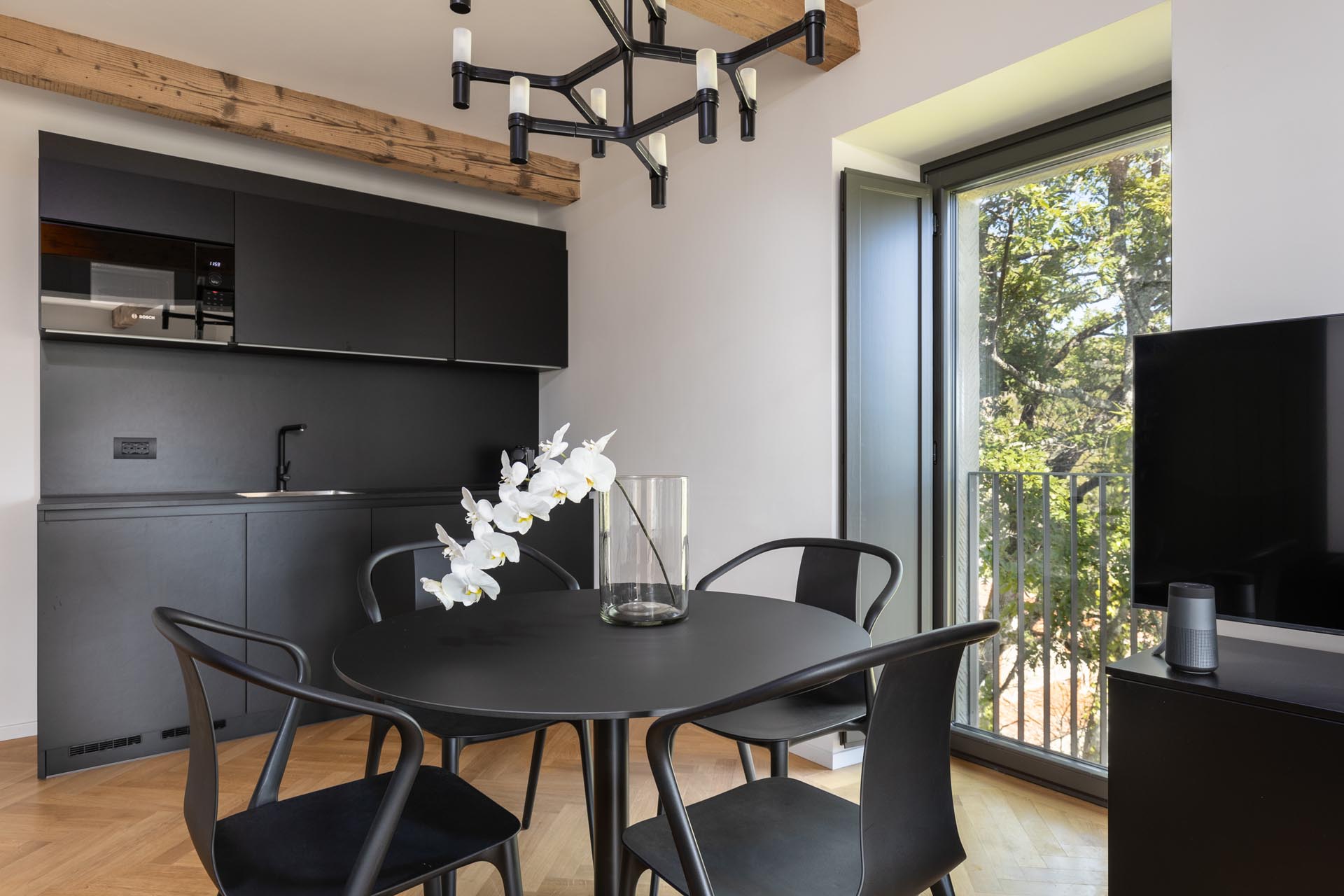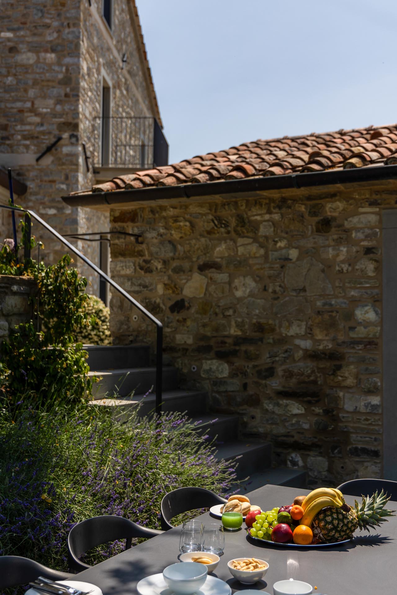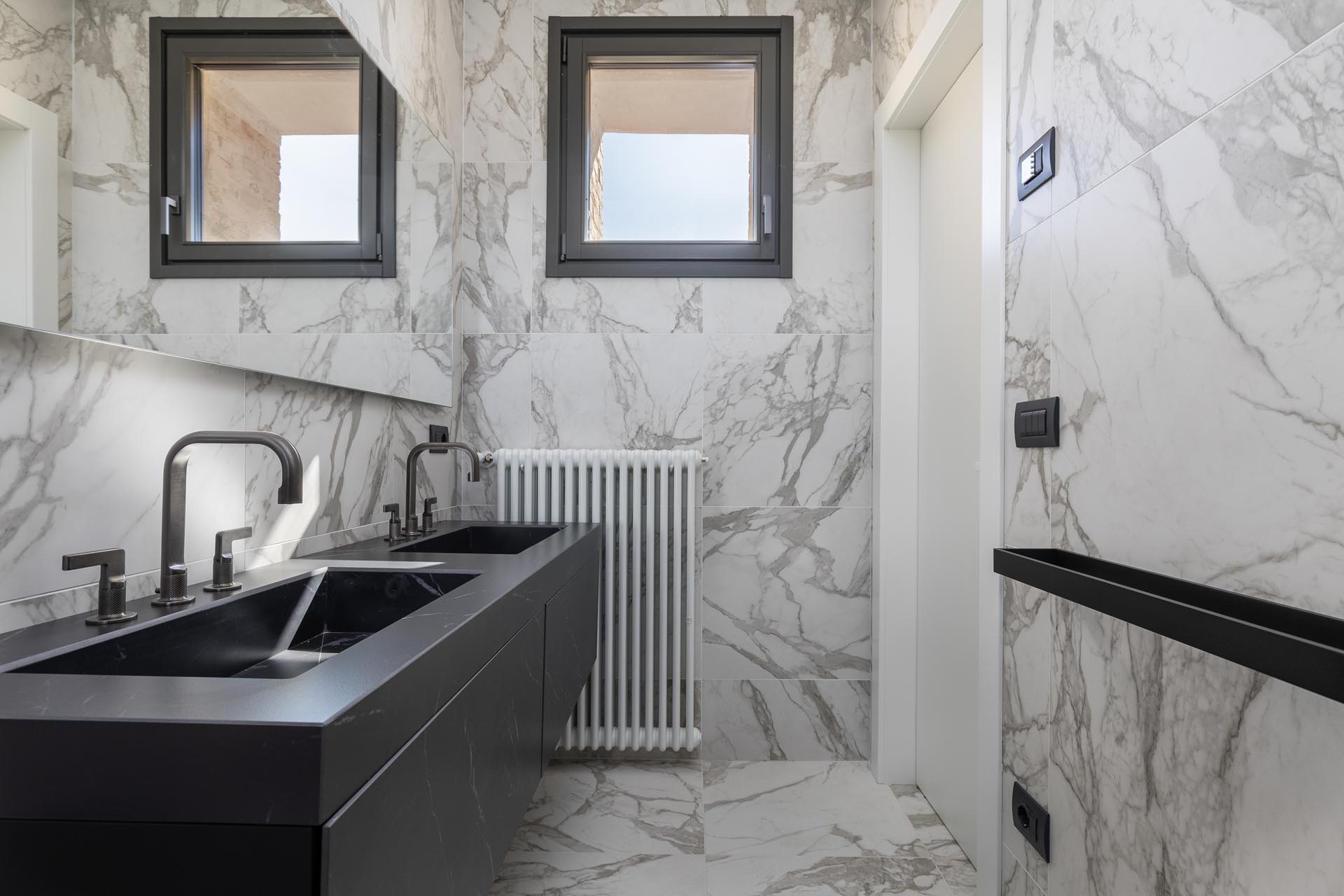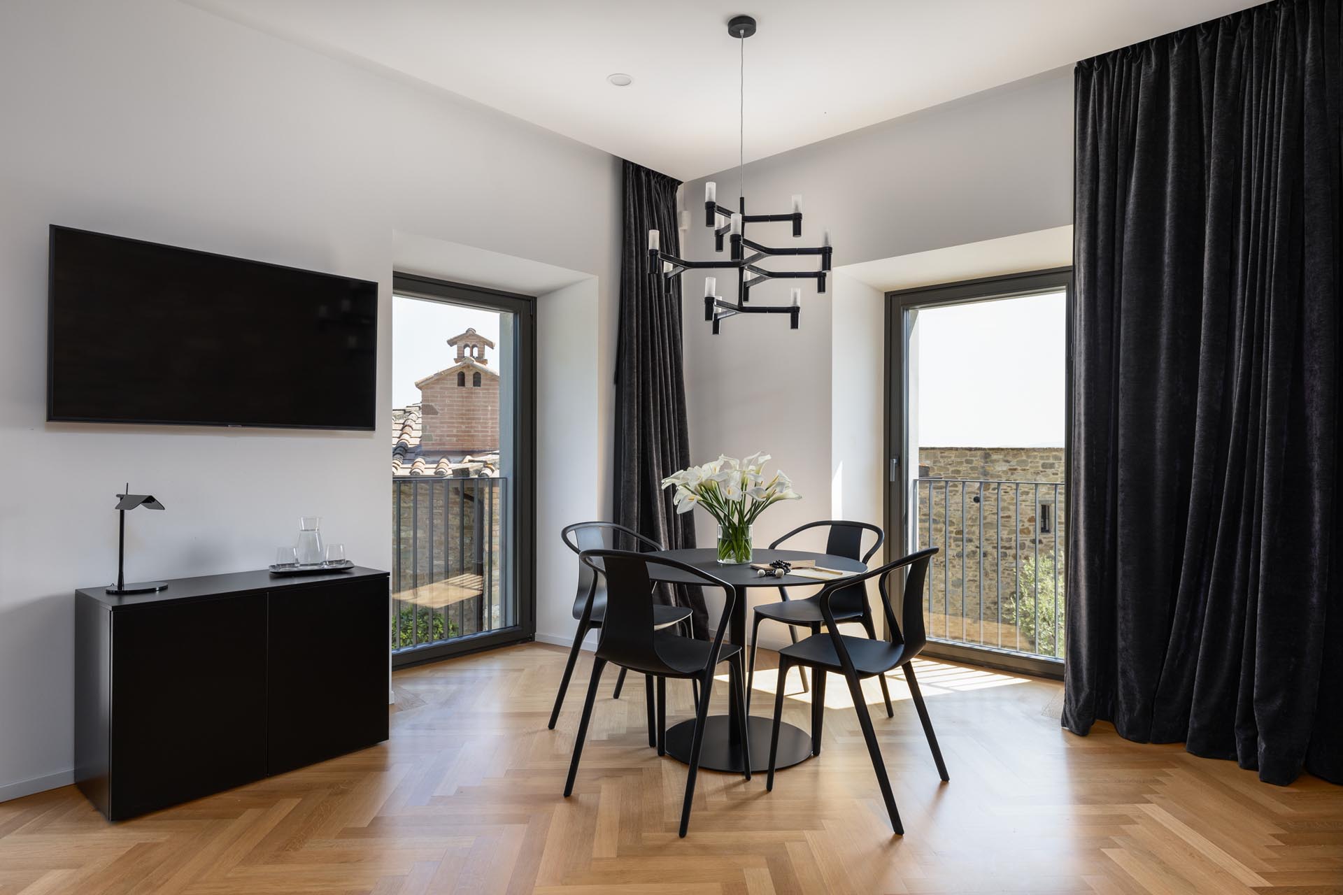 Centuries-old stones and original wooden beams have been thoughtfully integrated with wrought metal frames and fixtures, various marble types, colours, and modern fabrics.