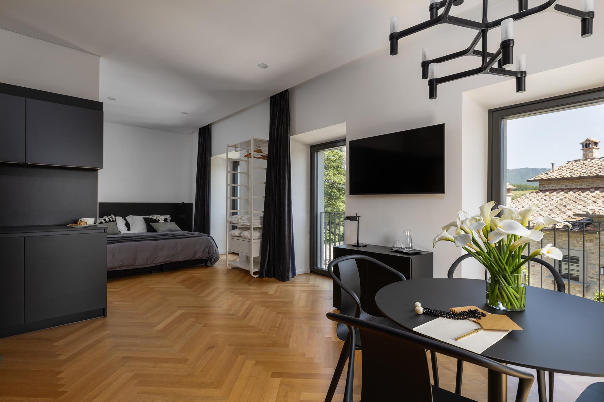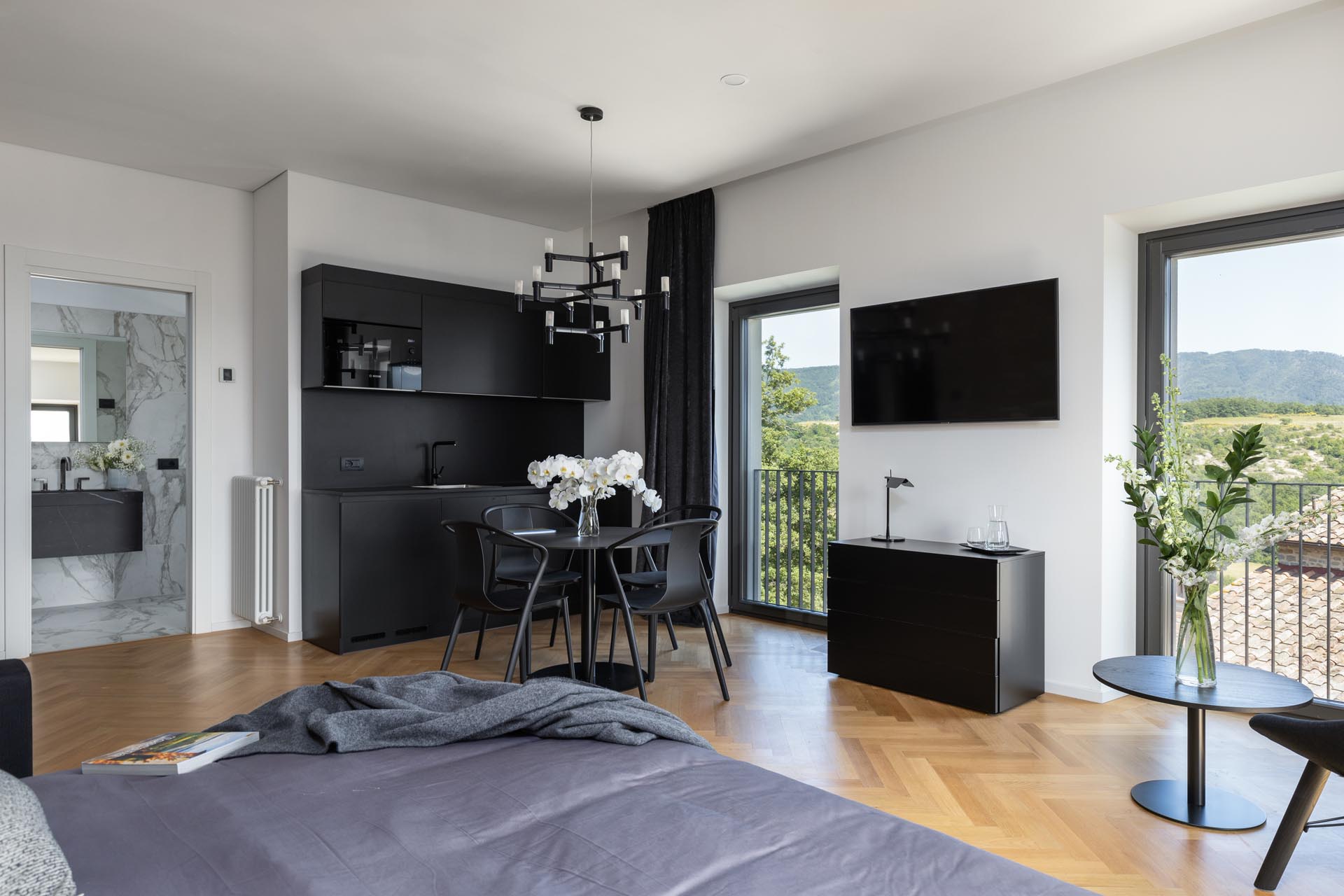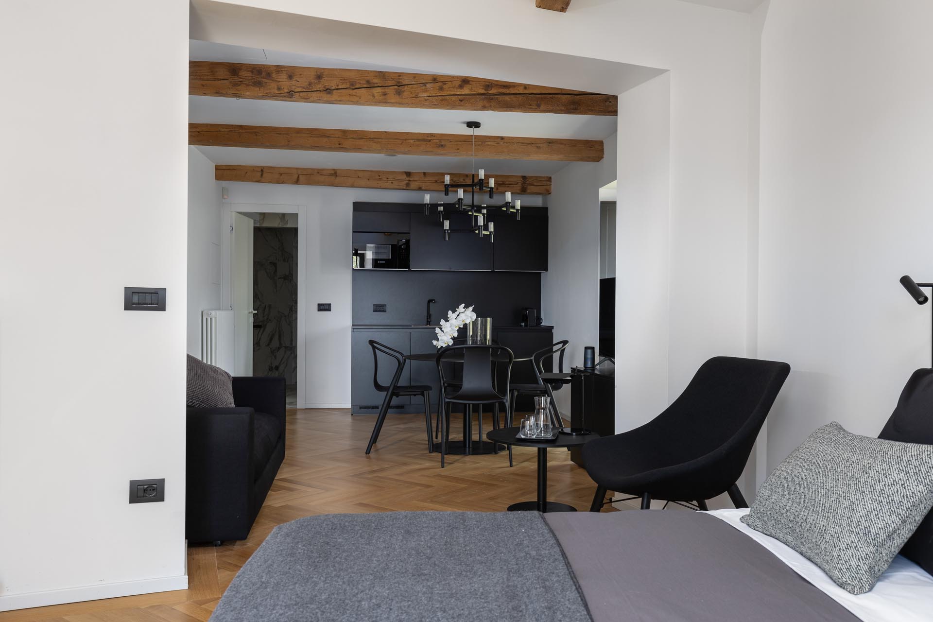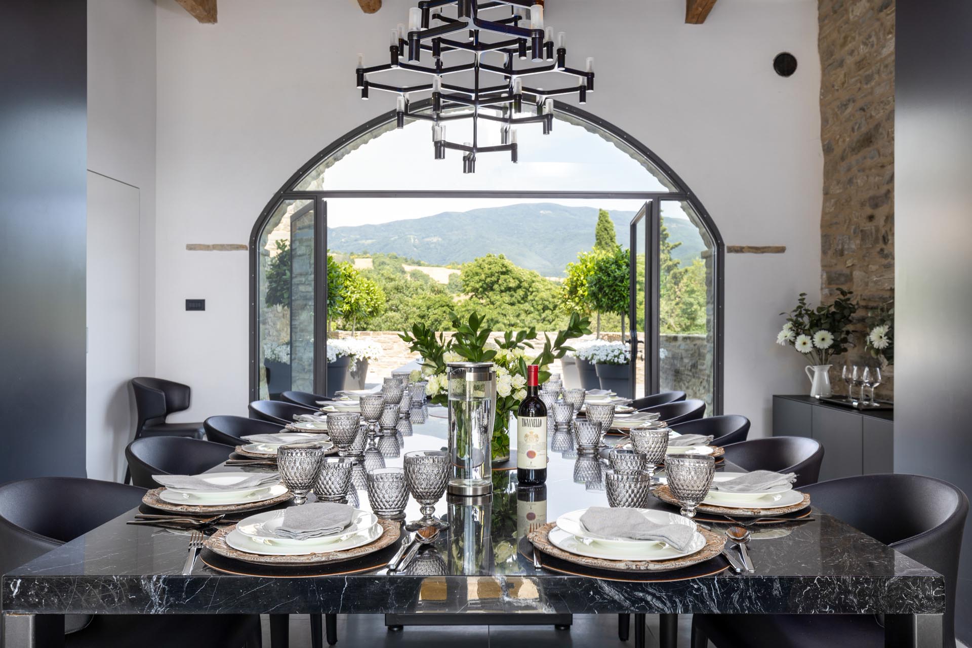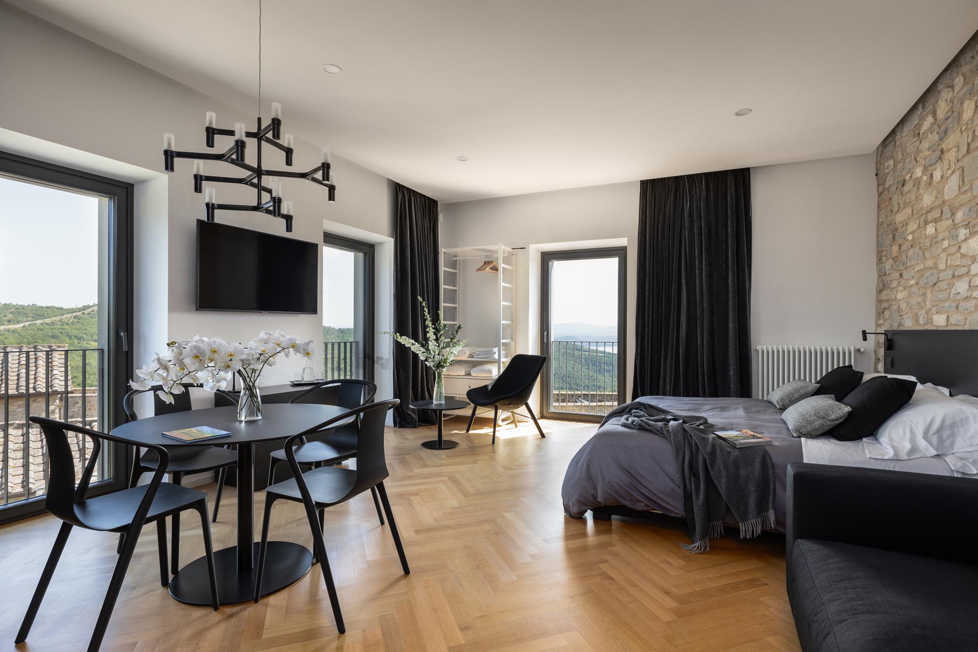 Centuries-old stones and original wooden beams have been thoughtfully integrated with wrought metal frames and fixtures, various marble types, colours, and modern fabrics.