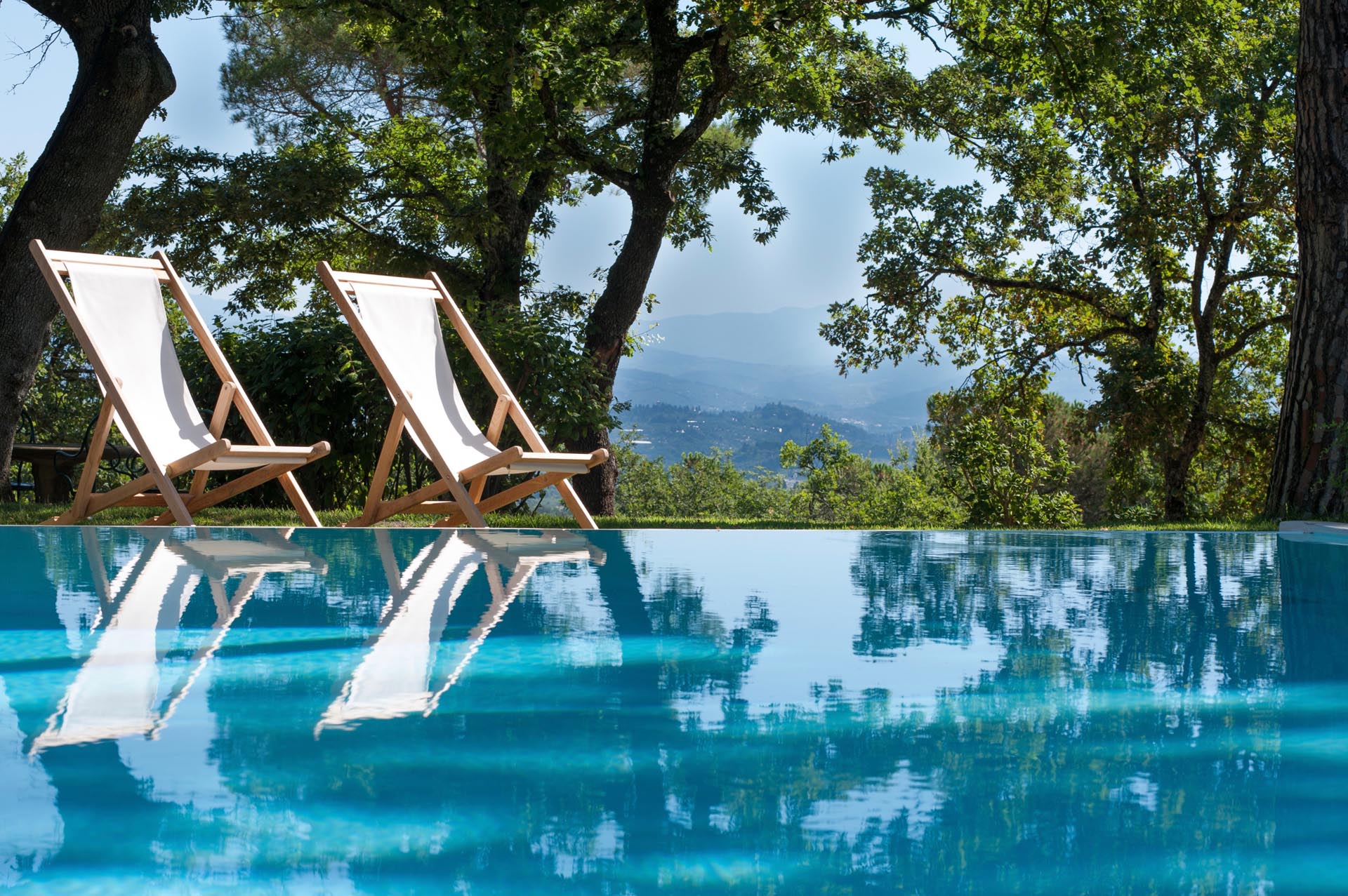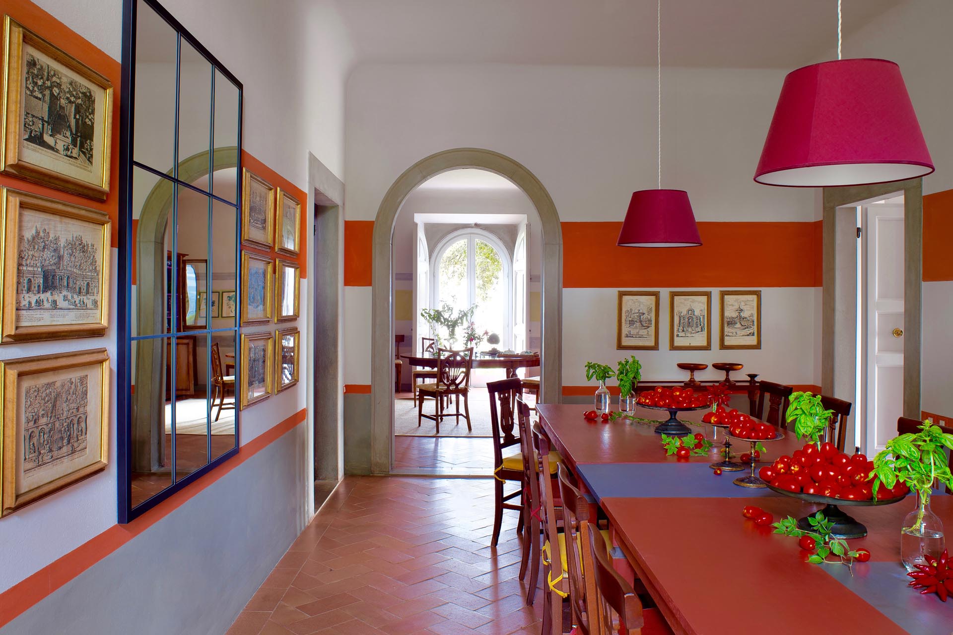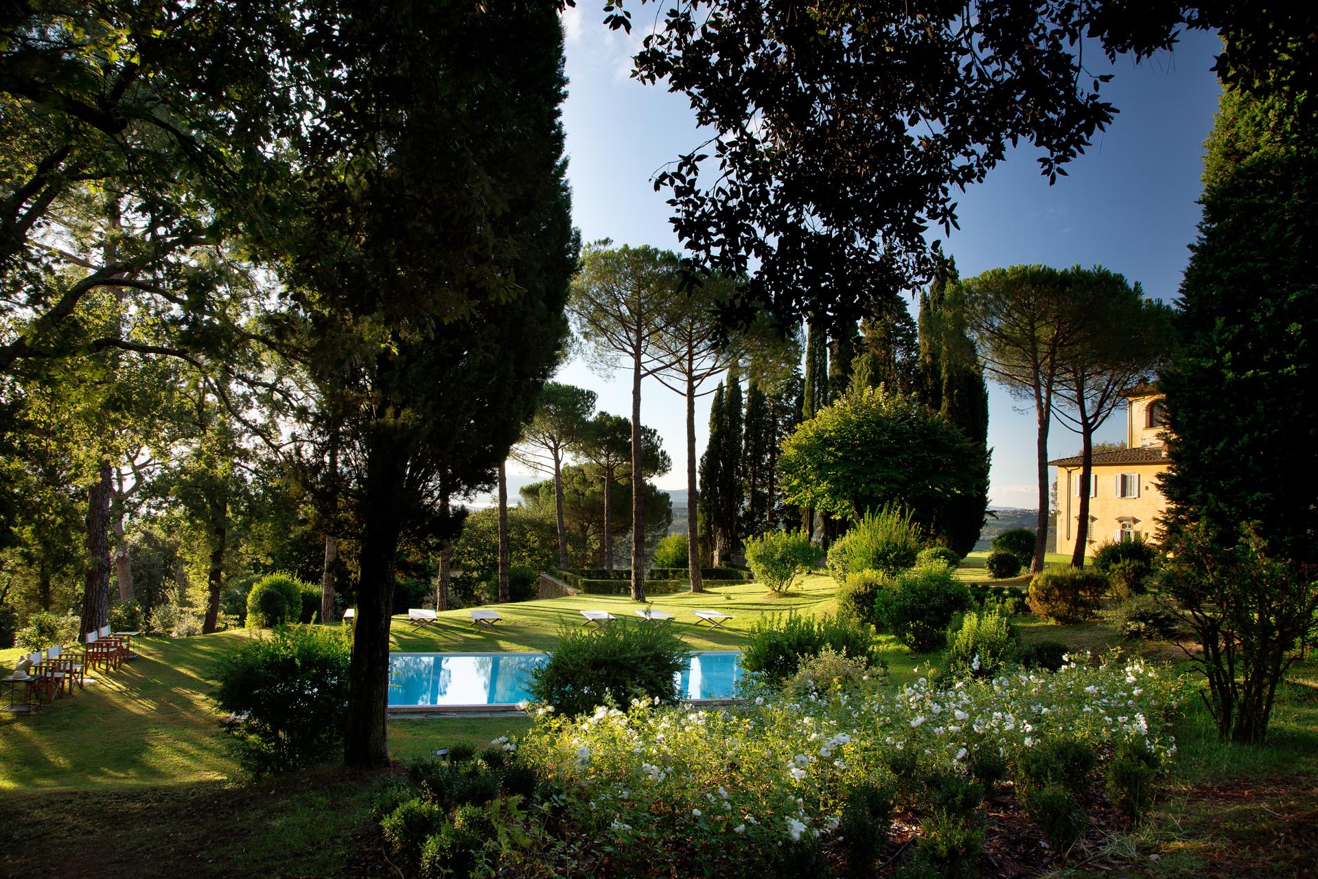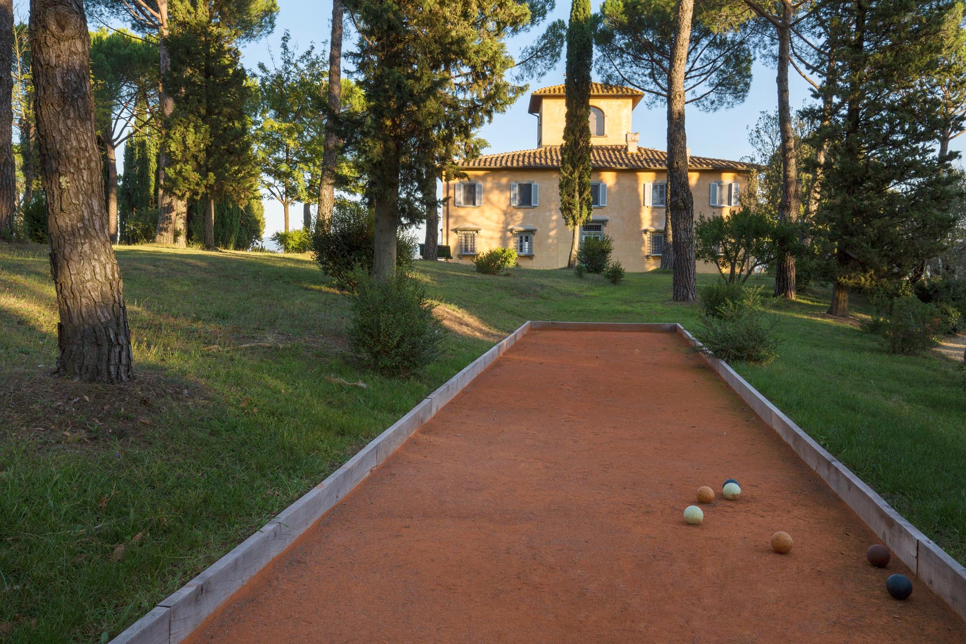 All of the interiors recently underwent a major renovation combining clean lines and decor. The villa features a cultured, refined style, unique, together with a grass tennis court, a heated pool, historic vaulted living rooms and elegant large rooms with ensuite bathrooms. Furnished in upscale Florentine style with period furniture, rooms feature terracotta-tiled floors, exposed beams and frescoes. The estate also offers guests a splendid park with centuries-old trees and colourful flowers, its tower provides a splendid platform for a panoramic view of the undulating terrain. Surrounded by a park, the grounds feature a comforting swimming pool, a small theatre in a natural setting and paths upon which to set out on walks.