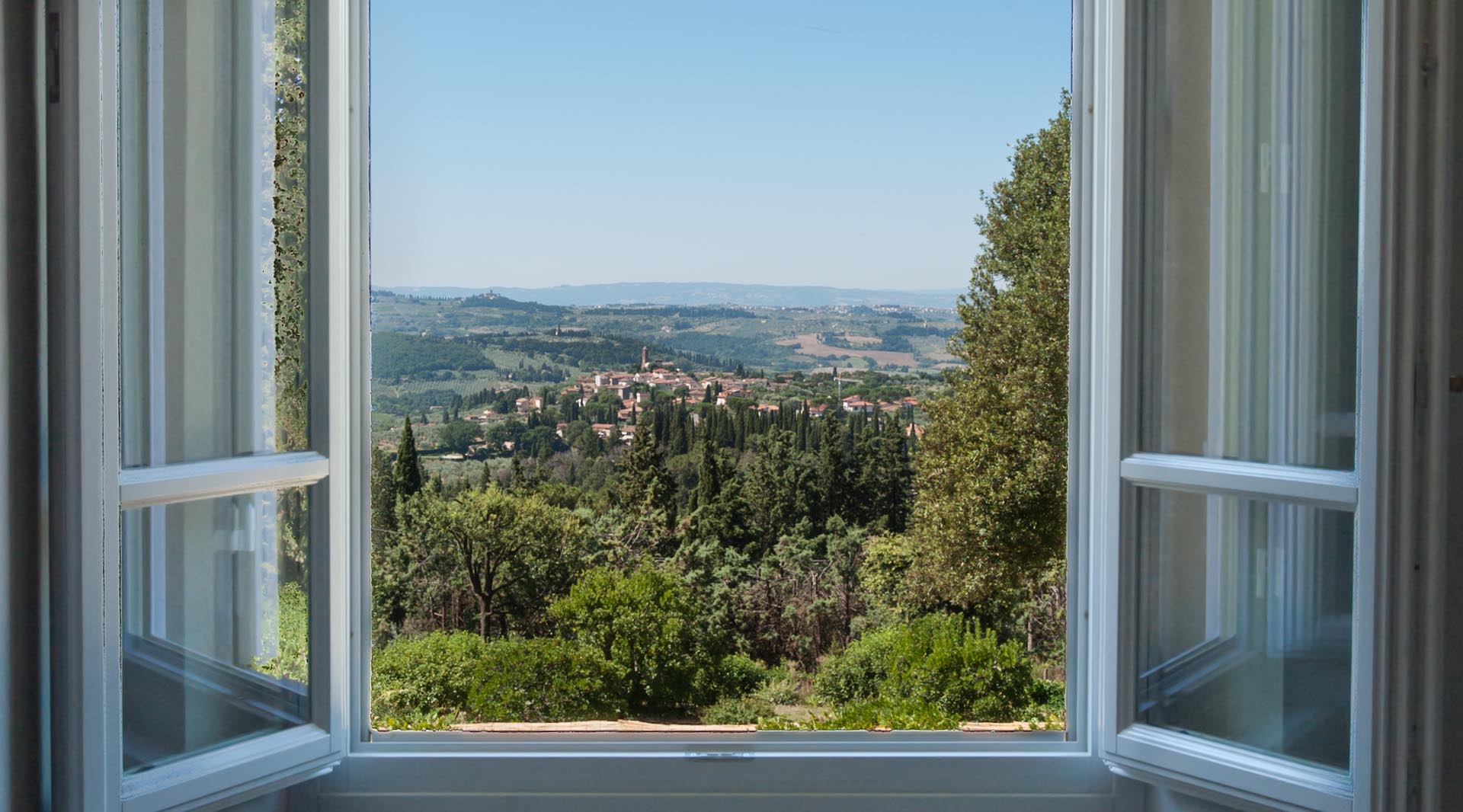 Discover a true classic Renaissance beauty, a stylish Italian villa within a magical estate, surrounded by vineyards, olive groves and old-growth hardwoods, with a commanding 360° breath-taking view on Florence’s surrounding countryside up to Giotto’s bell tower. Barely eight kilometres of easy driving separate the country home and its farm from Florence, this property is richly endowed with all comforts and accessories needed to live a comfortable and relaxing stay and is particularly suitable for families.