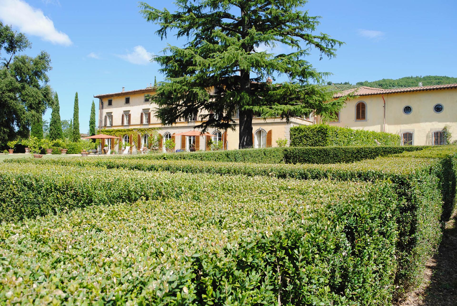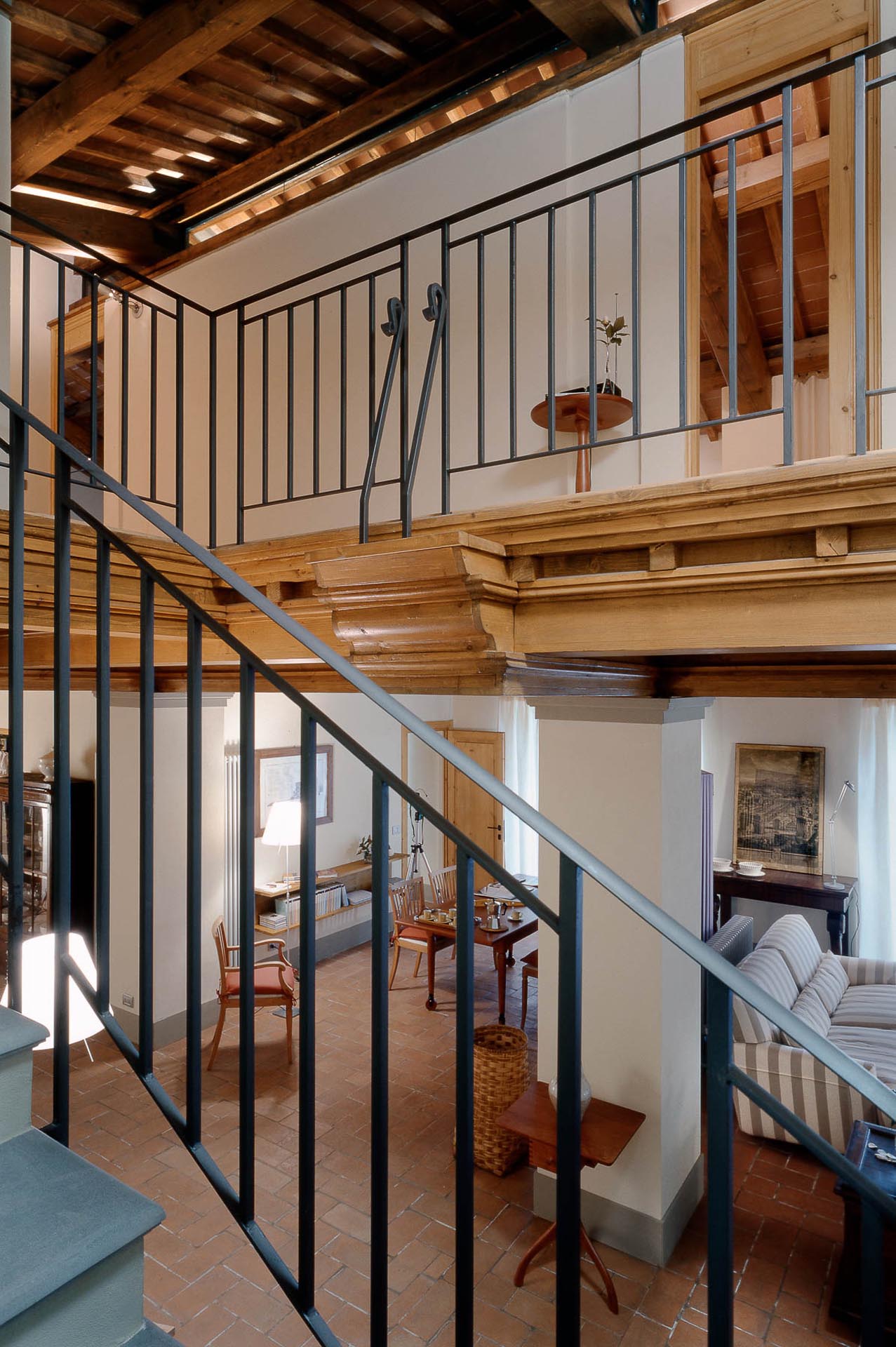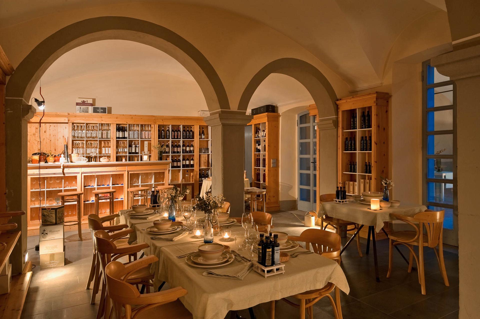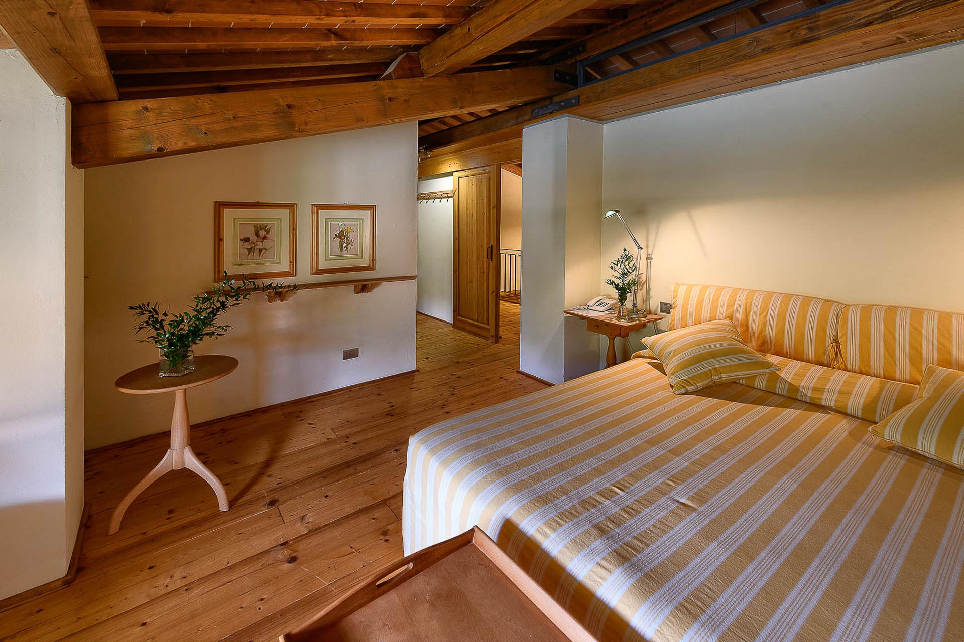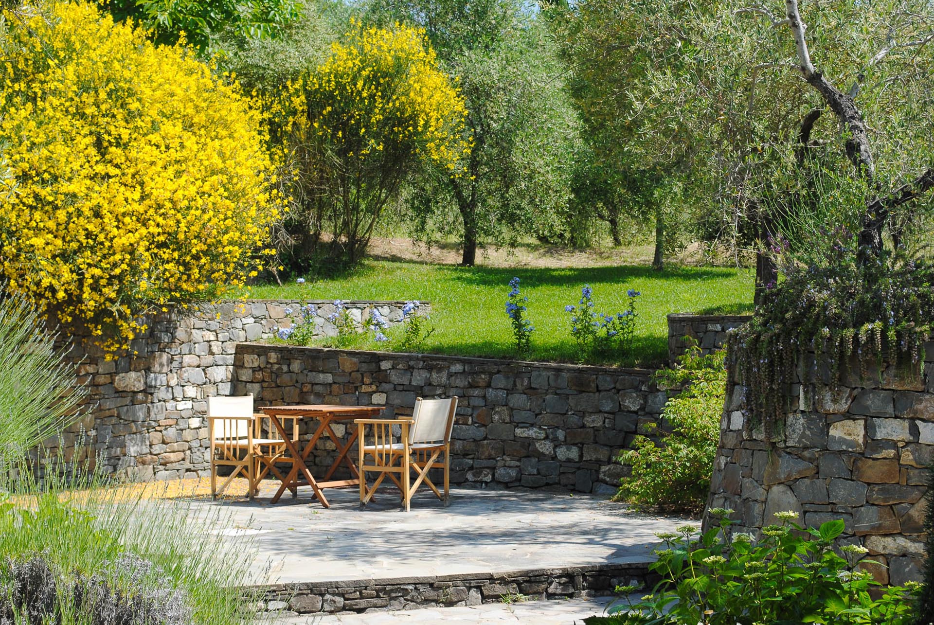 The interior design results from a classic yet renovated style with original handmade terracotta floor and woodbeamed ceilings. Elements of classic Italian architecture are combined with contemporary touches such as LED lights set in antique lamp holders, the steel kitchens in industrial style, the bathroom’s design inspired by the feeling of modern life. Materials, such as travertine marble, serene stone, and wood features have been sourced locally.