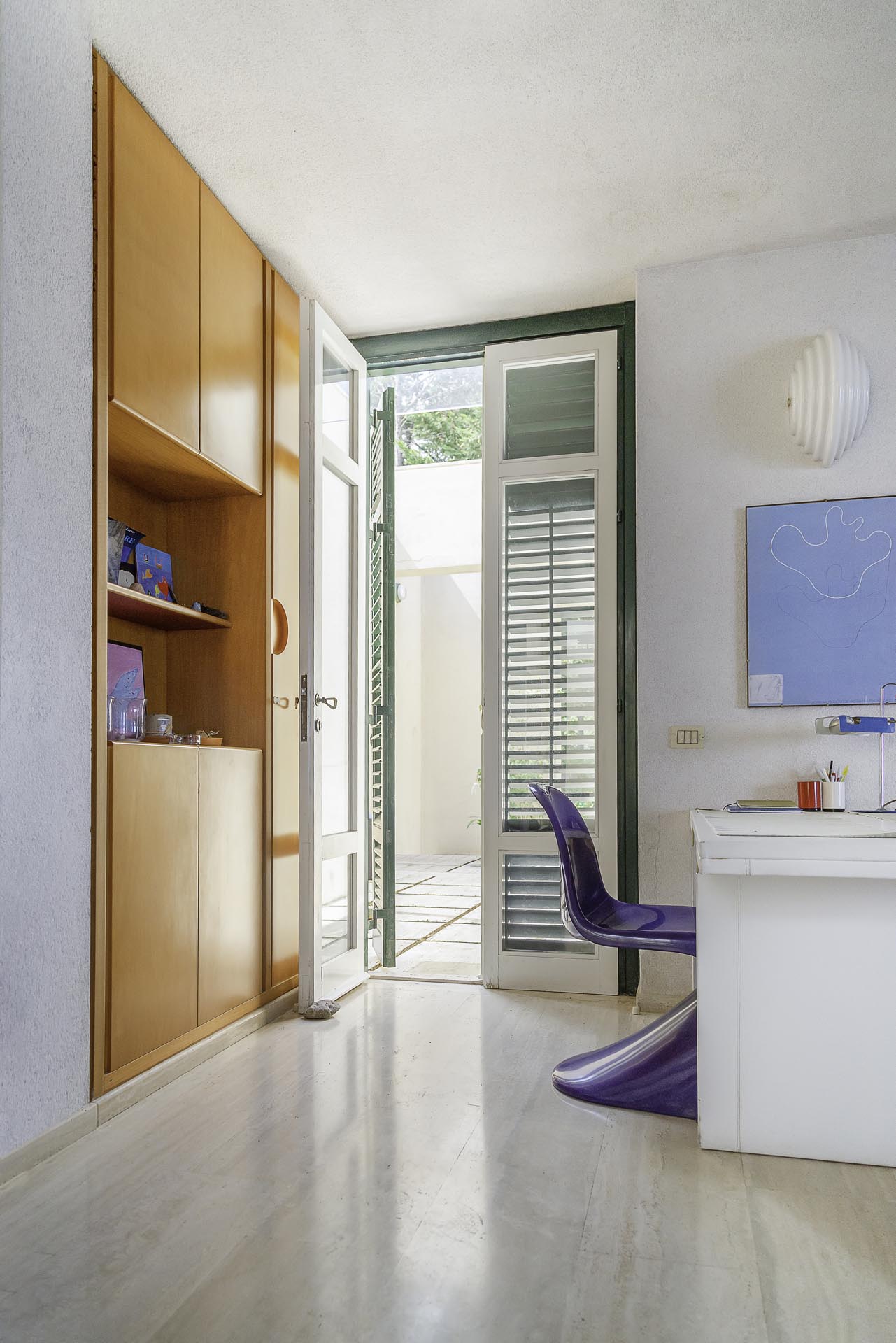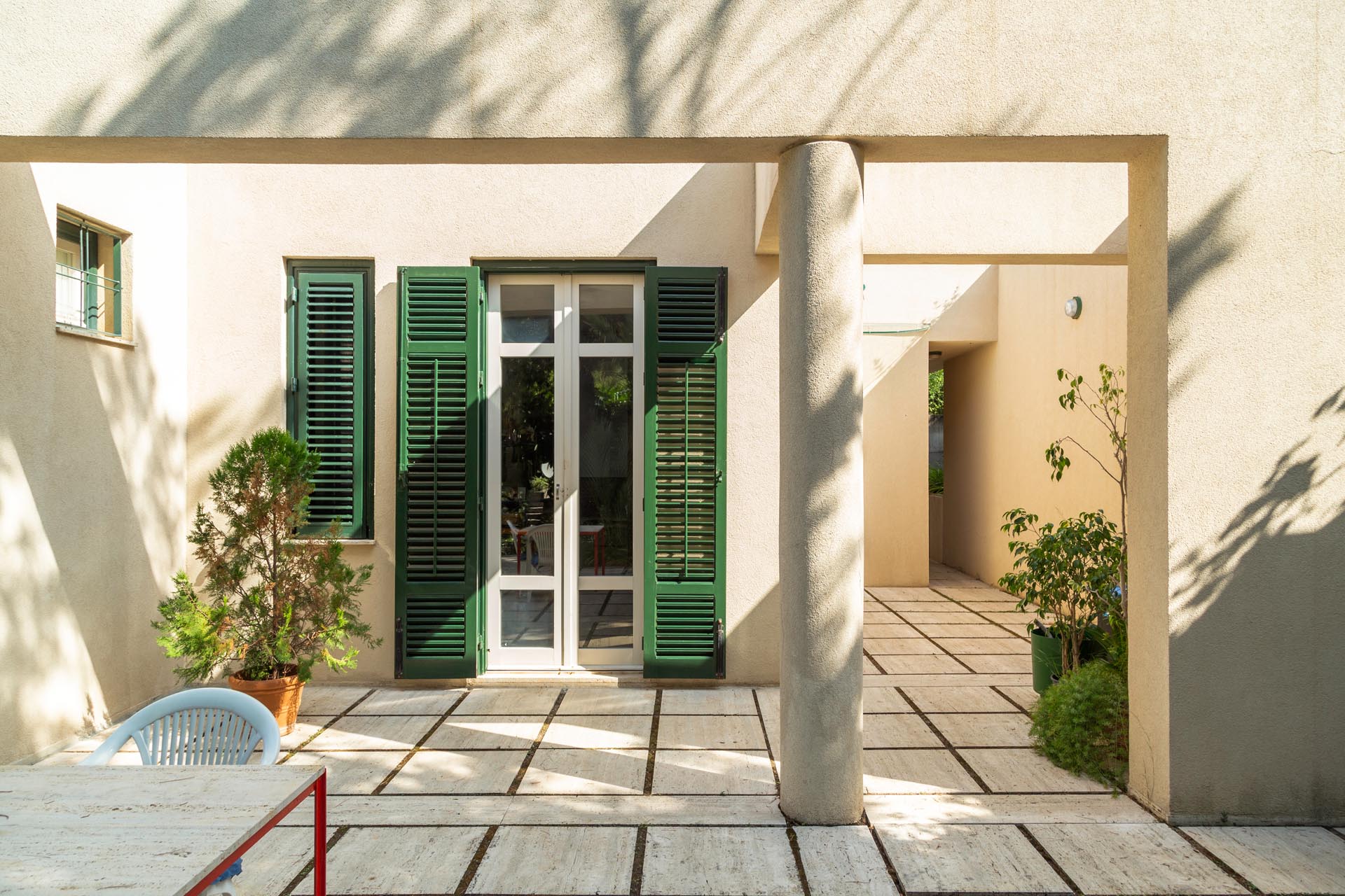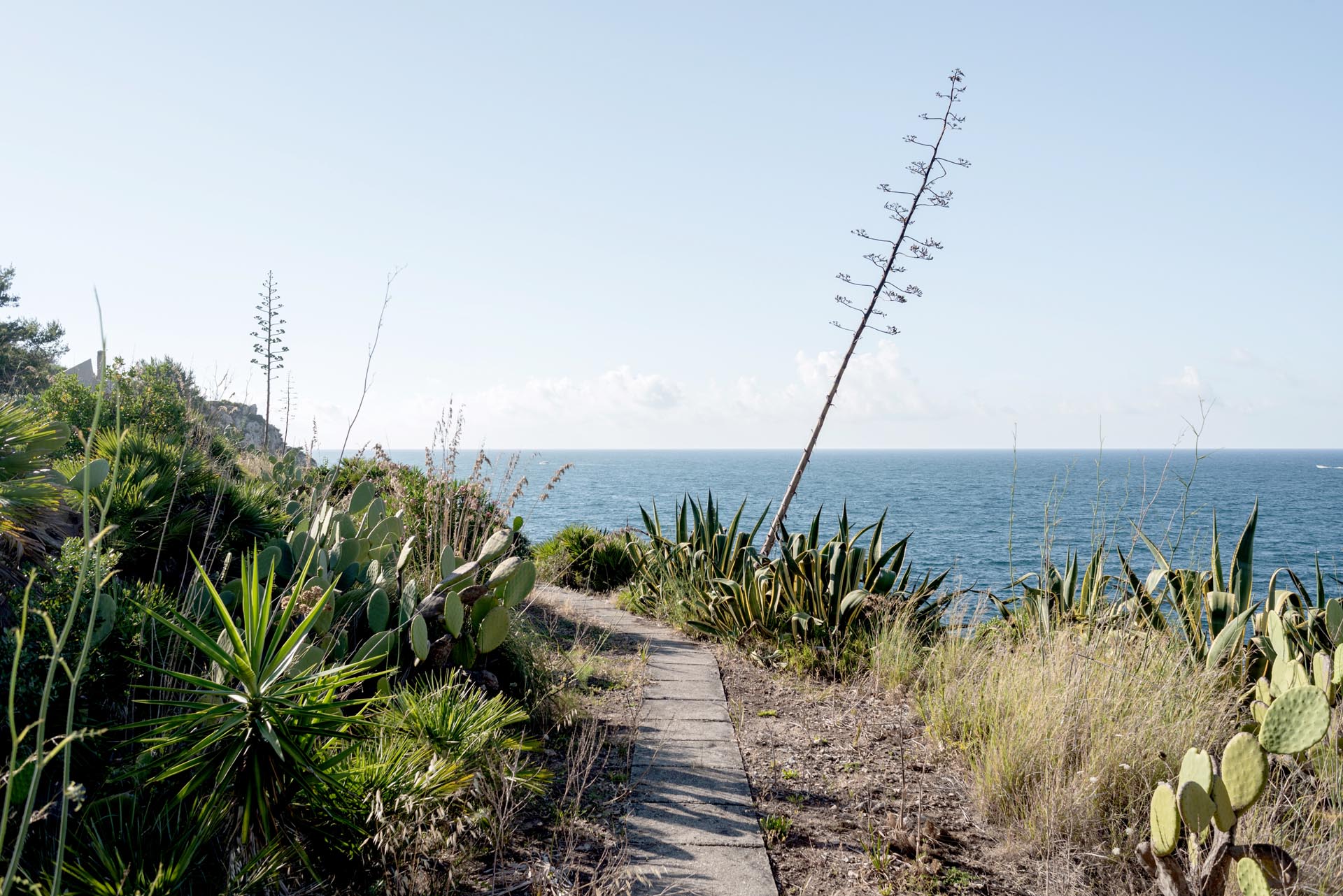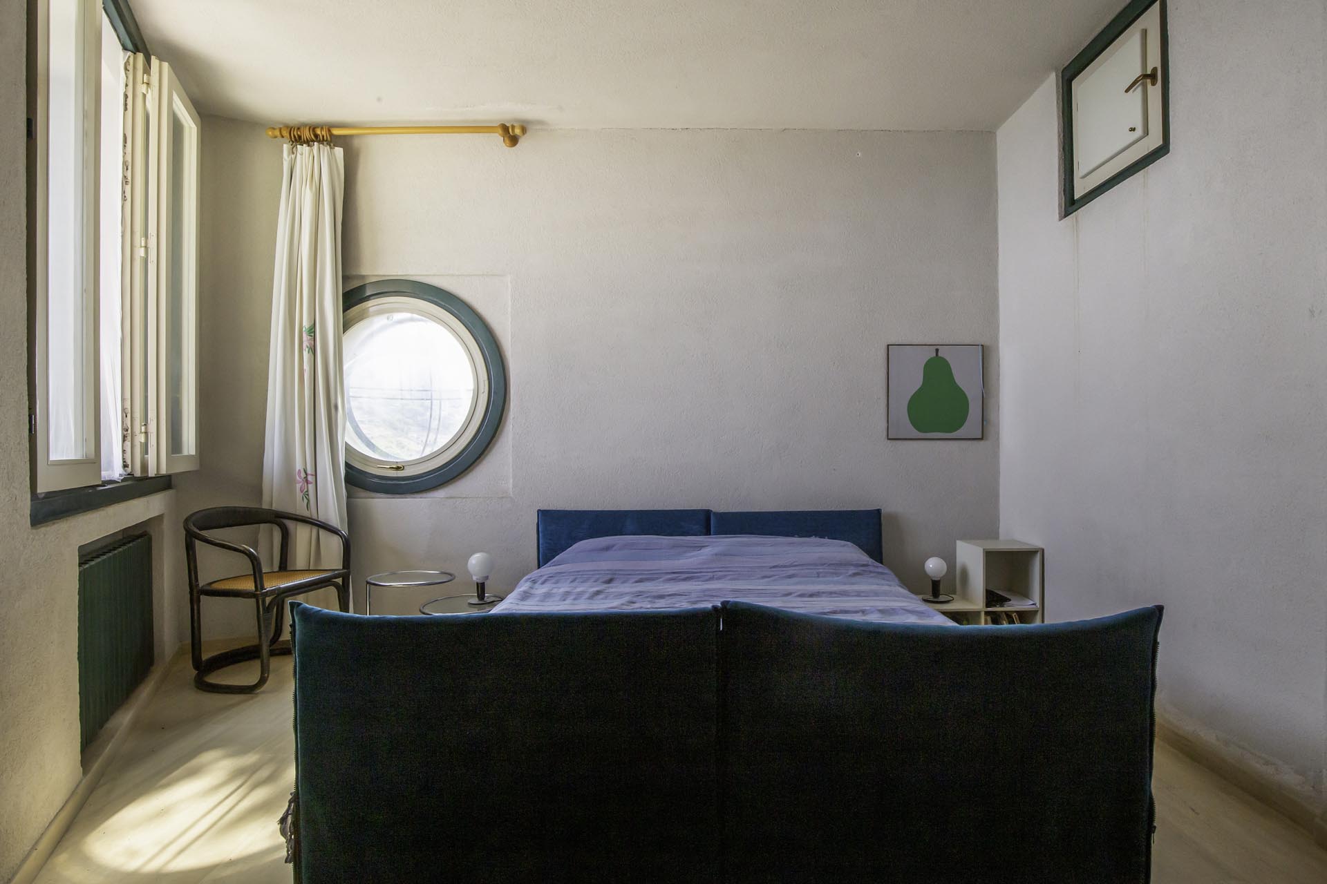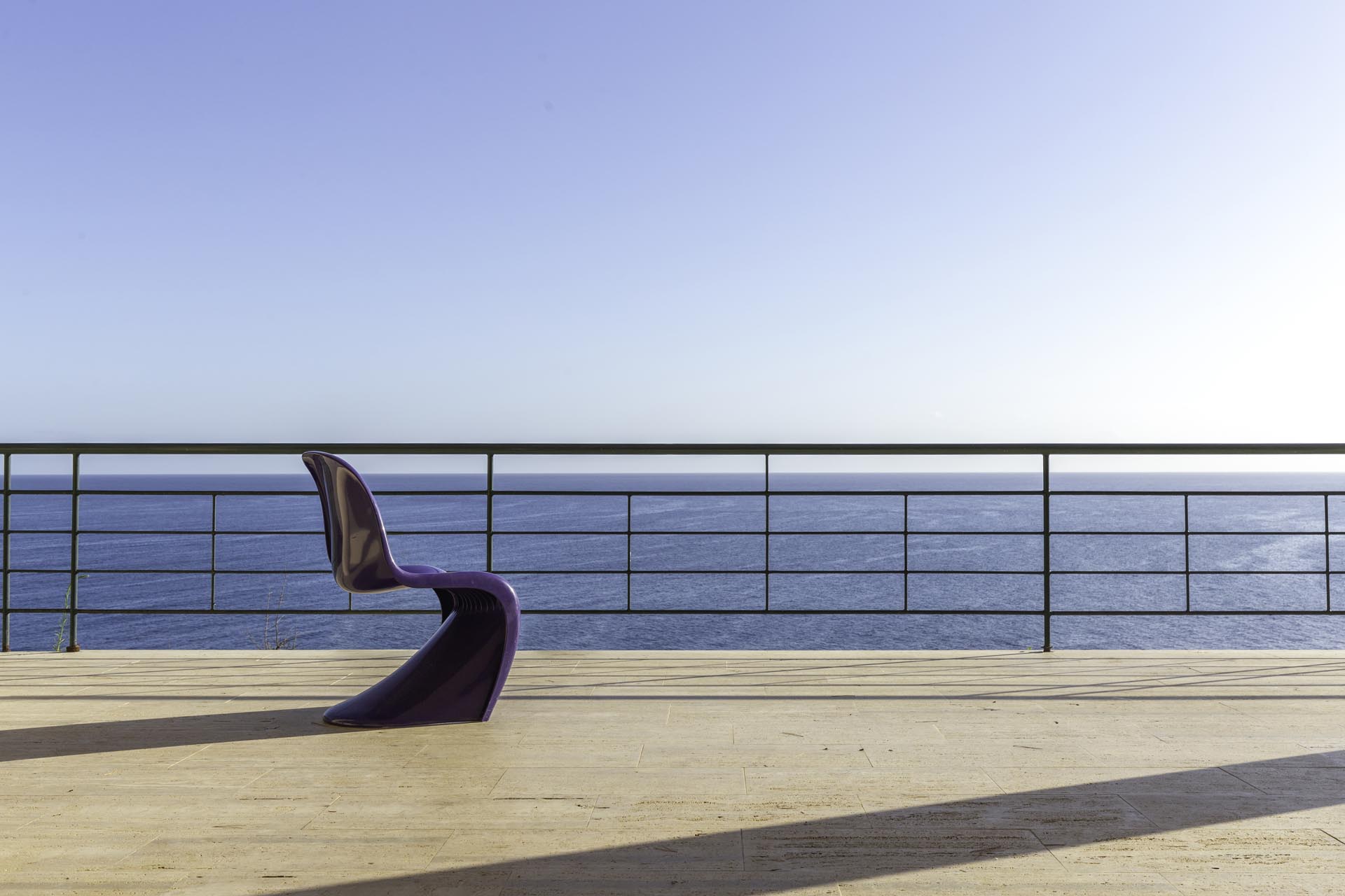 Located near the charming town of Bagheria half an hour away from Palermo, in Sicily, the house comes with its garden made up of olive trees, palms and agaves and with private access to the sea. Set on the highest point of his hills, the three-level house affords views of the scenic landscape from almost every angle.