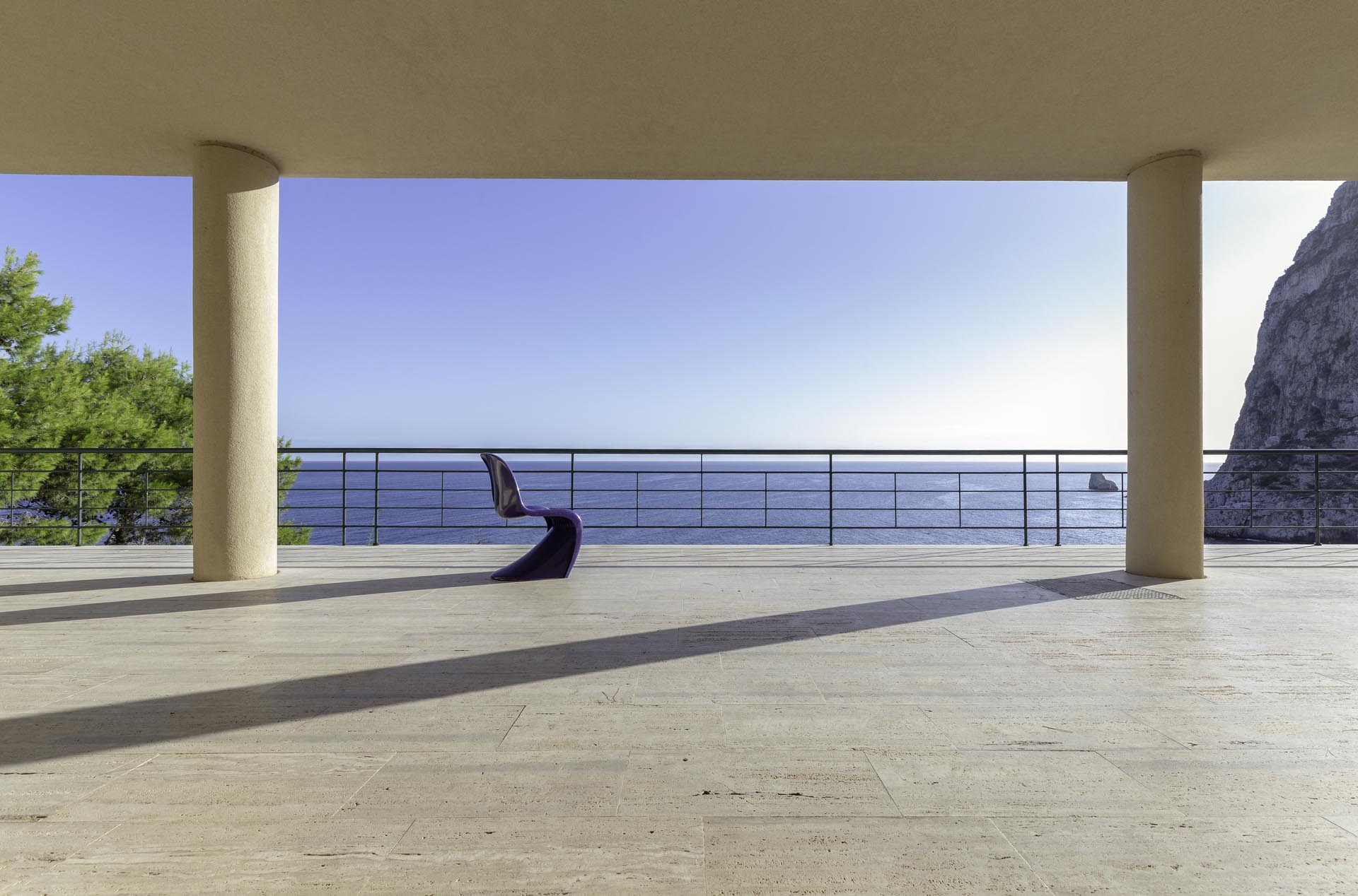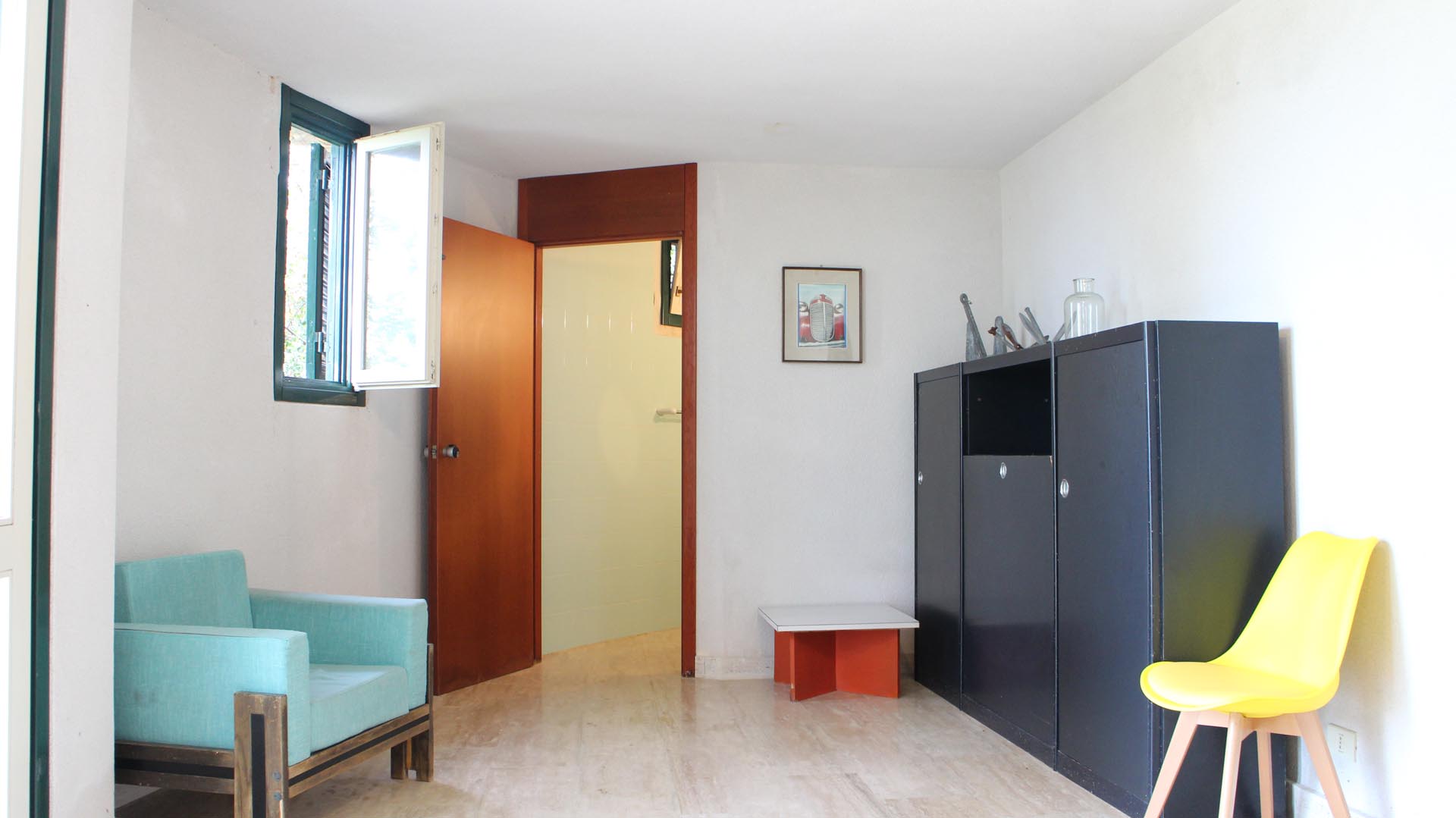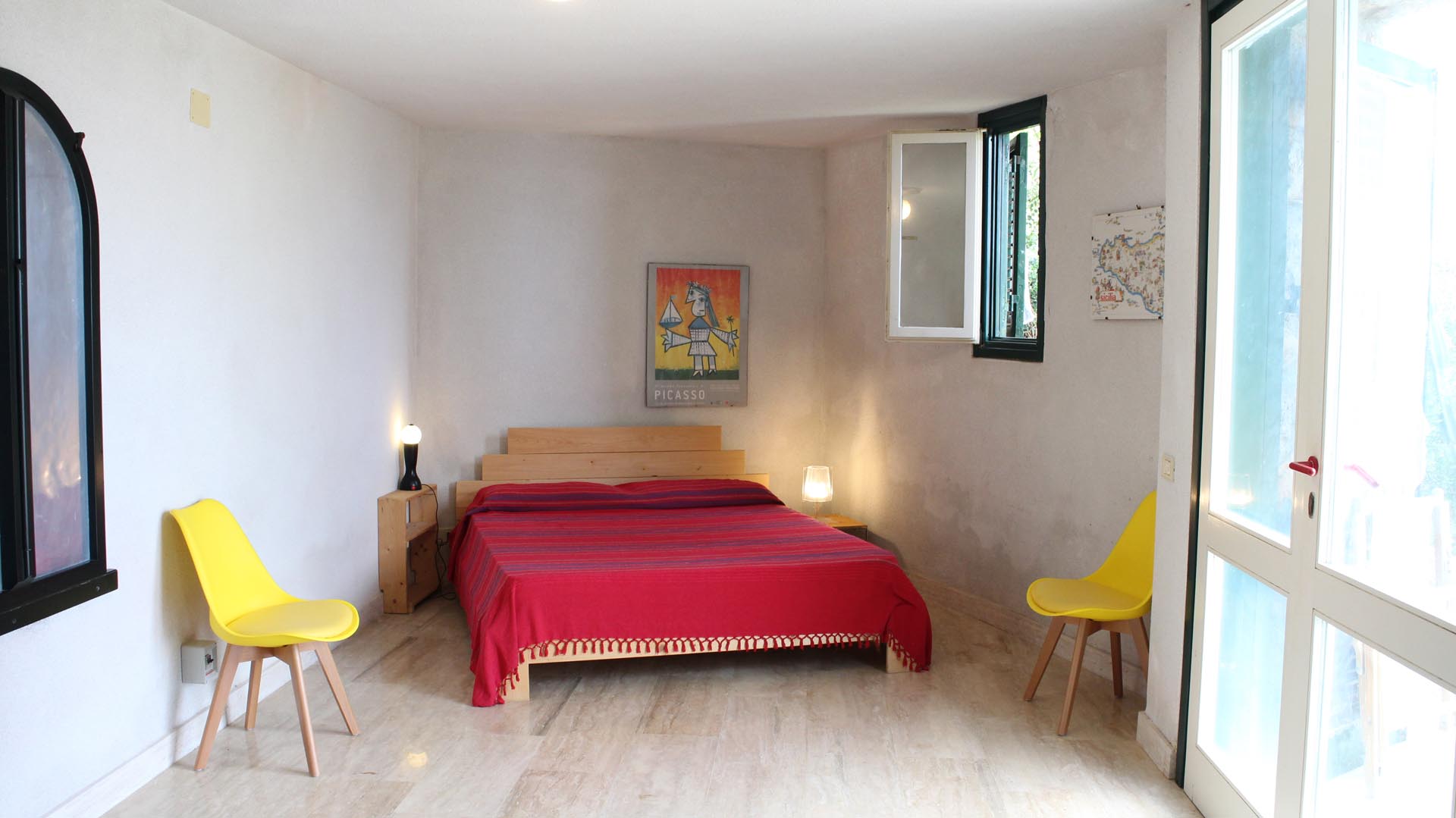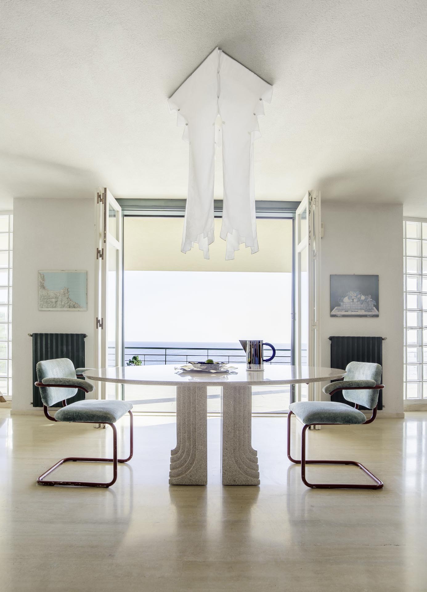 Located near the charming town of Bagheria half an hour away from Palermo, in Sicily, the house comes with its garden made up of olive trees, palms and agaves and with private access to the sea. Set on the highest point of his hills, the three-level house affords views of the scenic landscape from almost every angle.