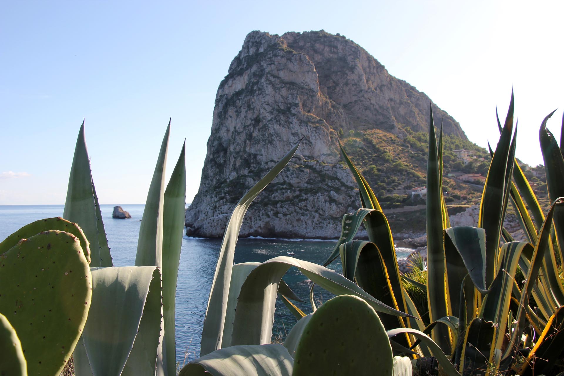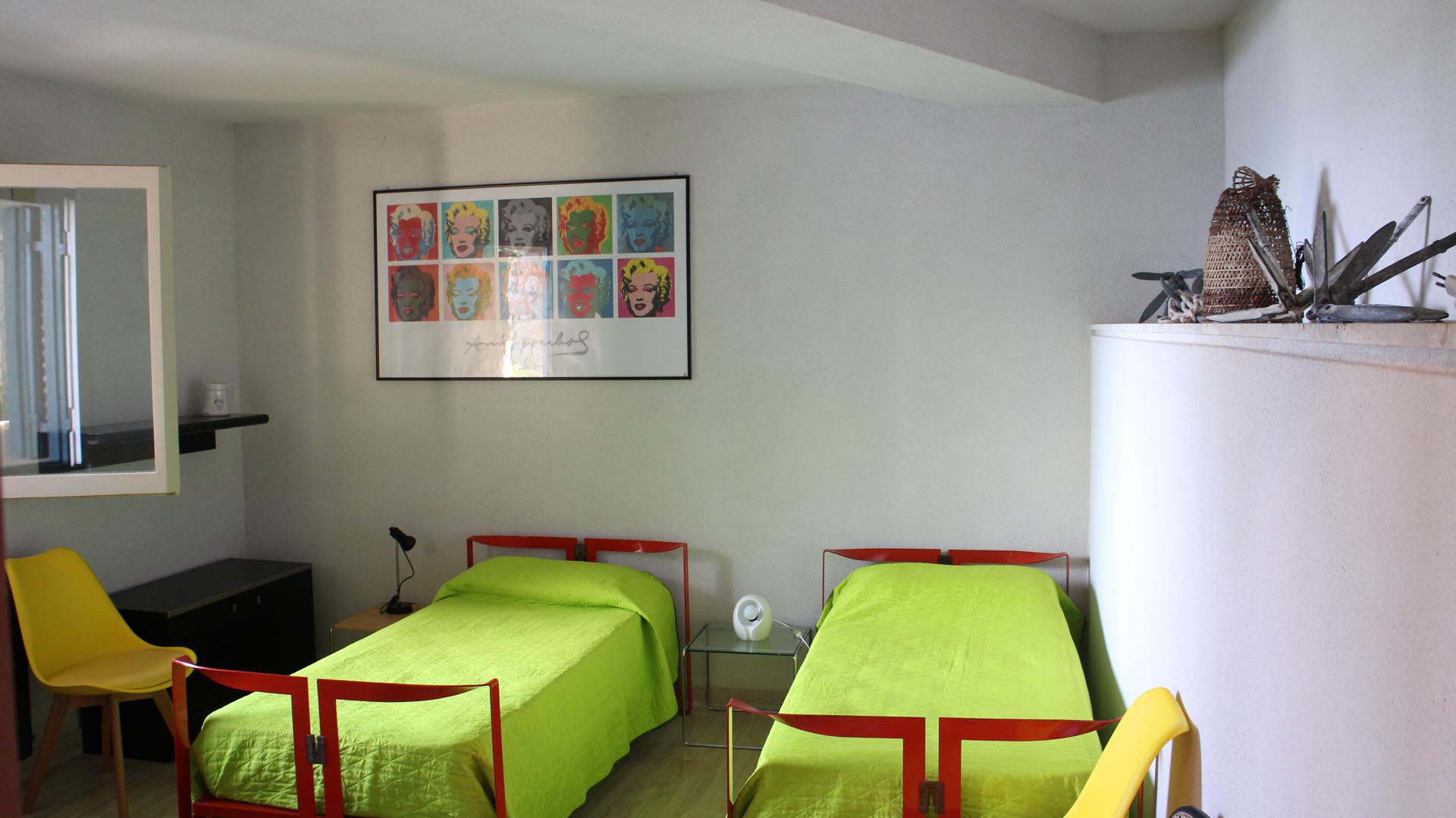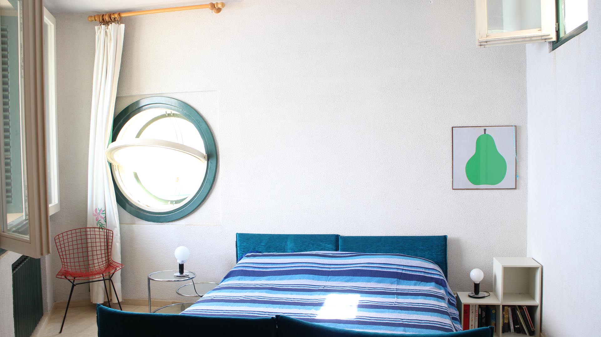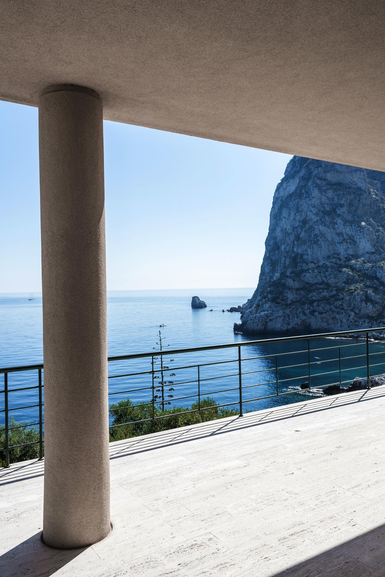 Located near the charming town of Bagheria half an hour away from Palermo, in Sicily, the house comes with its garden made up of olive trees, palms and agaves and with private access to the sea. Set on the highest point of his hills, the three-level house affords views of the scenic landscape from almost every angle.