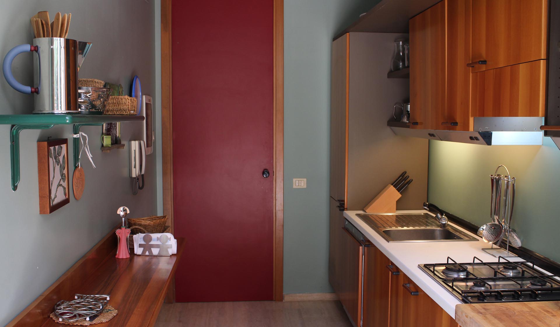 The interior of the property measures 200 square meters. The kitchen has been constantly restored and features a well-equipped kitchen with an electric oven, fridge and gas burners. It features all the tools for cooking, including pots and trays. It has direct access to the living and to the outside dining area that is always the preferred one for breakfast because of the shaded exposition.